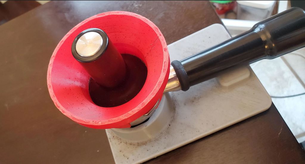 Denne doseringstragt er udviklet til at forbedre din kaffeforberedelsesproces ved at minimere spild under kværning. Den er designet til at passe perfekt på Breville BES 870 54mm portafilteret, når du kværner kaffe med en Baratza Sette 270wi kværn. Tragten sikrer, at den kværnede kaffe ledes direkte ned i portafilteret uden at spredes ud på bordet, hvilket resulterer i en renere arbejdsflade og en mere effektiv kaffedistribution. Et praktisk redskab for dem, der ønsker at optimere deres espressoforberedelse.