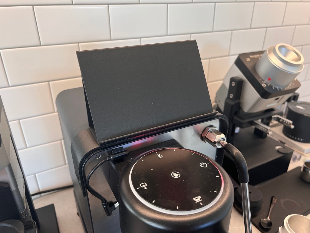 Opgrader dit espresso-setup med denne Decent Espresso Tablet Stand, designet specielt til at passe til fabriksmonteringshulene. Dette stand er ikke kun praktisk, men sikrer også en stabil base for din tablet under dit brygningsarbejde. Den holder din tablet sikkert og i den rette højde, hvilket gør det nemt at følge opskrifter eller justere indstillinger på din espresso-maskine. Med sin robuste konstruktion og enkle design, vil denne stand være en fremragende tilføjelse til ethvert kaffeområde.