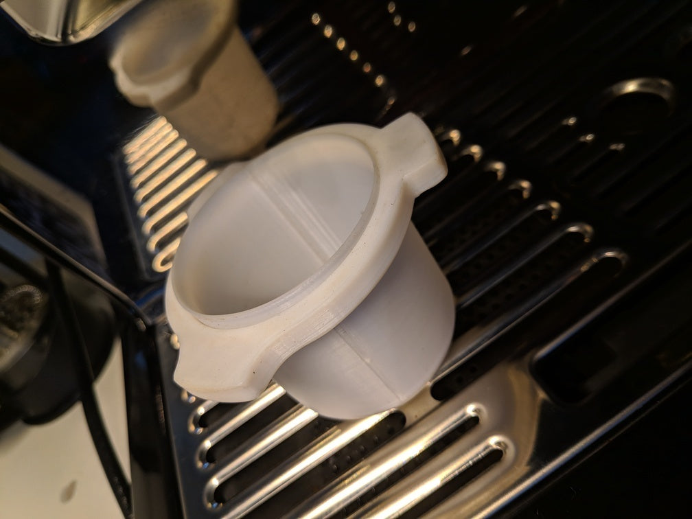Ved at placere dit portafilter omvendt ovenpå koppen, kan du med en simpel vending effektivt og jævnt hælde kaffegrumset direkte ned i portafilteret. Dette reducerer spild og holder din arbejdsflade renere.