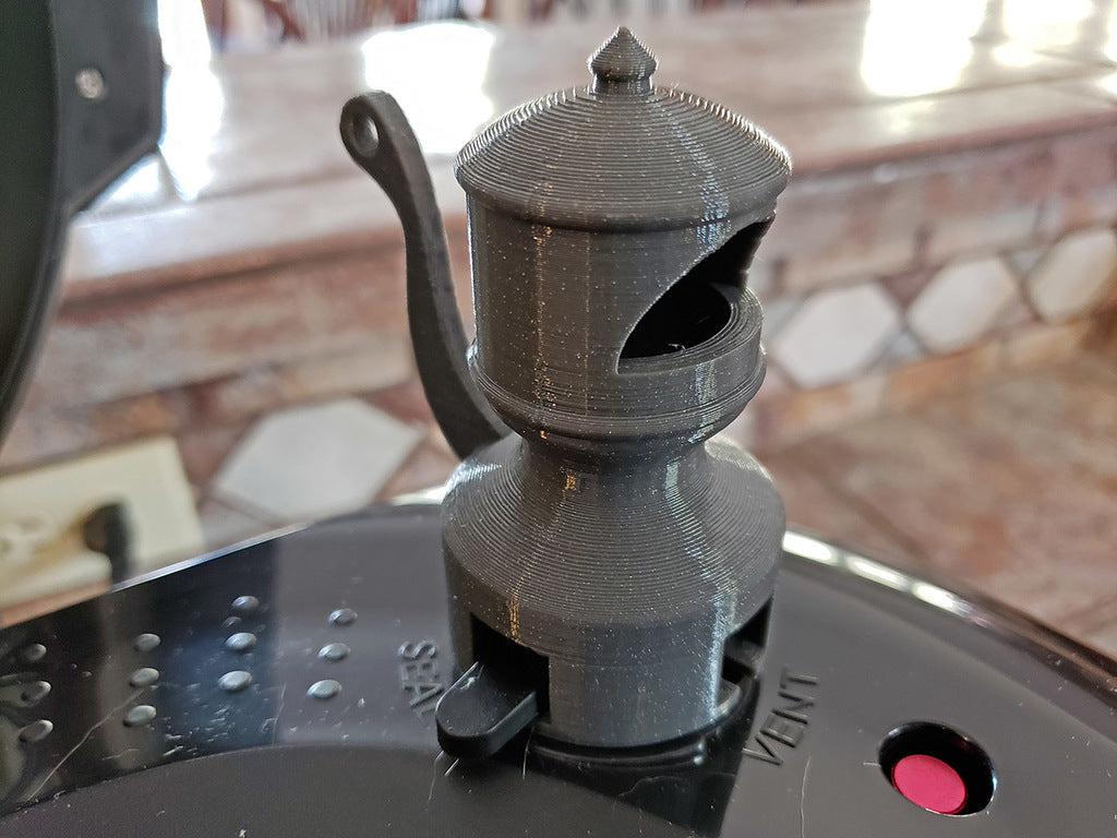 Denne dampafleder er specielt designet til din Ninja Foodi trykkoger og monteres let på 'Seal / Vent'-ventilen. Den hjælper med at lede den frigivne damp sikkert væk fra dine overskabe og vægge, hvilket beskytter dit køkkenmiljø mod fugt. Udover sin praktiske funktion har aflederen et unikt design, der minder om en klassisk damptogfløjte, tilføjende et charmerende element til dit køkken.
