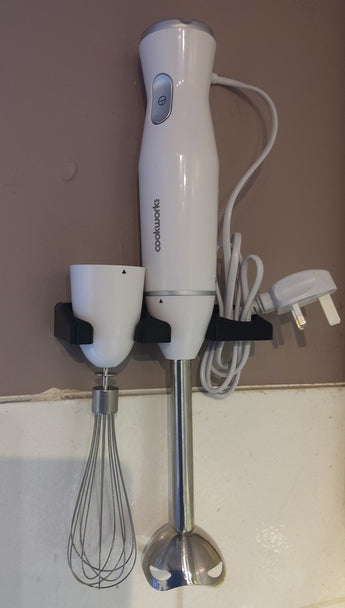 Uanset om du laver cremede supper, friske smoothies eller lækre saucer, er din stavblender altid let tilgængelig. Selvom beslaget oprindeligt er tilpasset en 'Cookworks' blender, er dets design fleksibelt og kan potentielt passe til et bredt udvalg af stavblendere på markedet, hvilket gør det til en alsidig løsning for dem, der søger praktisk tilbehør til eksempelvis Delonghi eller lignende mærker.