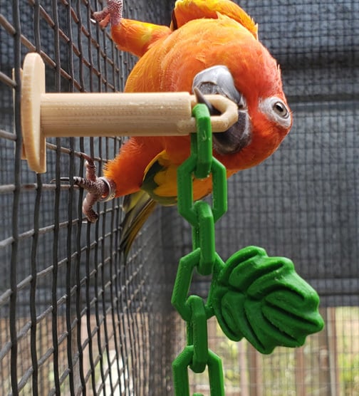 Legetøjet kombinerer en robust kæde med charmerende vinstokke, der tiltrækker fuglenes opmærksomhed. Den lyse farve gør det let for fuglen at se og den unikke form stimulerer deres naturlige nysgerrighed og legelyst.