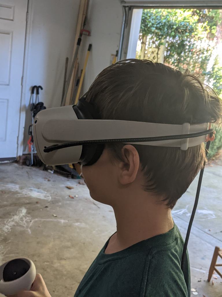 Denne Oculus ledningsholder er designet til at forbedre din virtuelle virkelighedsoplevelse ved effektivt at styre din headsets strømkabel. Ved at føre kablet sikkert ned langs din ryg forhindrer den, at ledningen snor sig omkring dine arme eller forstyrrer dine bevægelser under intense VR-sessioner, som f.eks. i Beat Saber. Dette sikrer en mere ubesværet og engagerende oplevelse, hvor du frit kan bevæge dig.