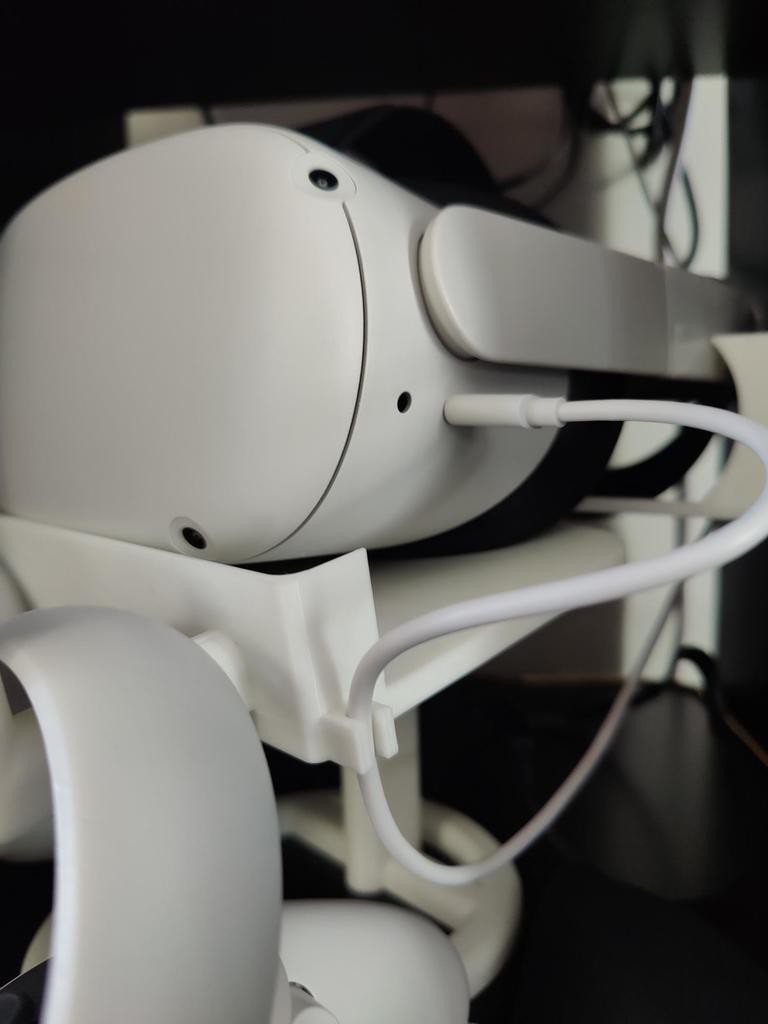 Oculus Quest 2 stativet er designet til at give dit VR-headset en organiseret og sikker opbevaringsløsning. Dette praktiske stativ sikrer, at din Oculus Quest 2 altid har sin egen faste plads, når den ikke er i brug, hvilket bidrager til et ryddeligt gaming-område.