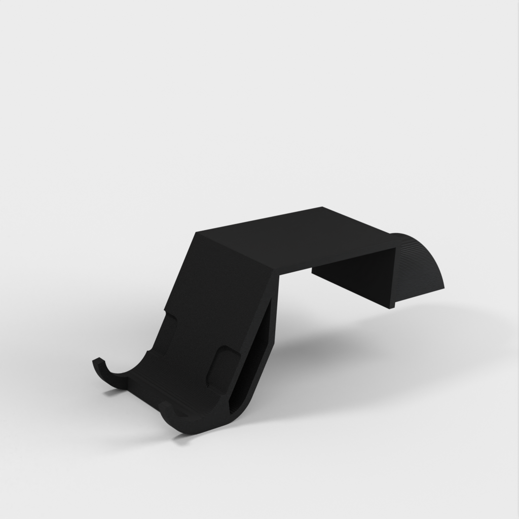 Beskrivelse: Xbox Elite Controller og Headset Holder er designet til at hænge over toppen af en Xbox One S, mens den står på siden. Den holder en Elite-controller på den ene side og et gaming-headset på den anden side.