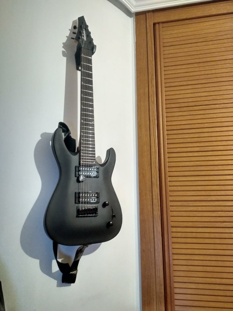 The functional design allows your 7-string guitar to become part of your decor, whether in the practice room, studio, or at home. The pre-drilled holes with a diameter of 5 mm enable solid and stable mounting. A reliable guitar wall bracket that is both discreet and decorative, helping to keep your instrument collection organized. This guitar wall hanger is a robust solution for anyone wanting to safely showcase their 7-string guitar.