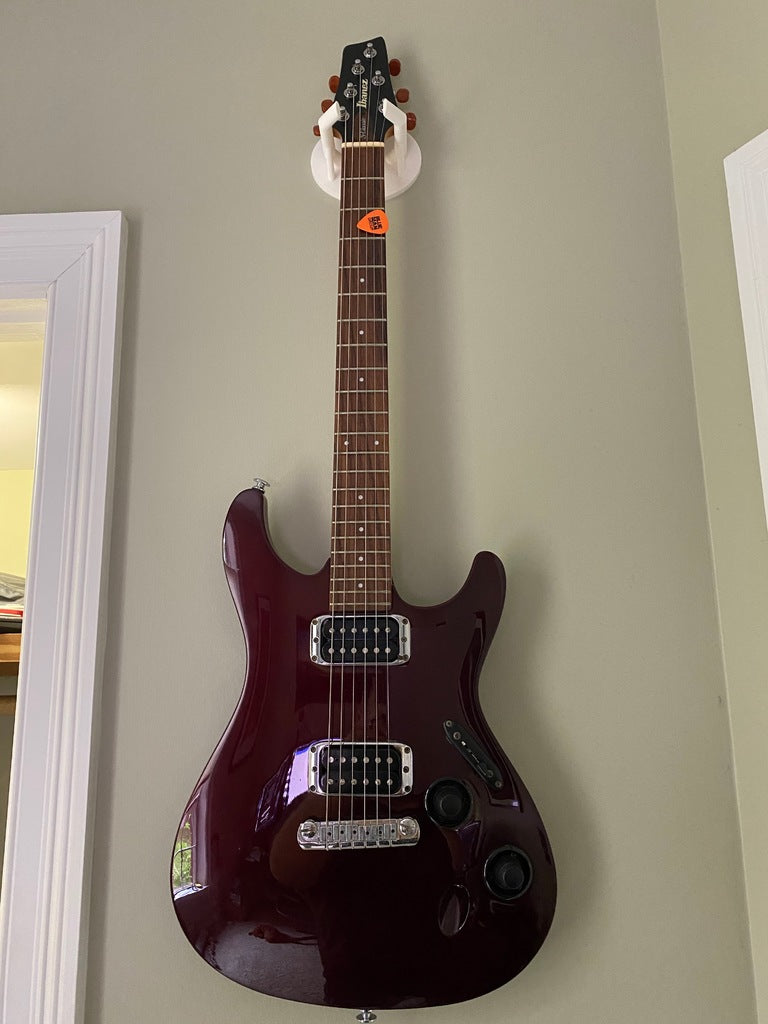This functional guitar wall mount offers an elegant and space-saving solution for storing your musical instrument. By mounting your guitar on the wall, you achieve not only a tidy space but also a decorative display of your instrument, which is always within reach. This wall bracket for guitar is suitable for light electric guitars. If you wish to hang heavier models, such as a Les Paul, it is recommended to use a material that provides increased strength to ensure optimal and stable support for your guitar. With this guitar wall mount, your instrument becomes an integrated part of the room's decor.