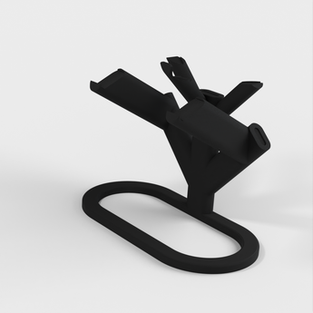 Stativ til Meta/Oculus Quest 2 VR-headset og controllere hvor du sparer plads ved at orientere tingene lodret i en trækonfiguration. Det holder også controllerne i en ergonomisk position så de er klar til at gribe.