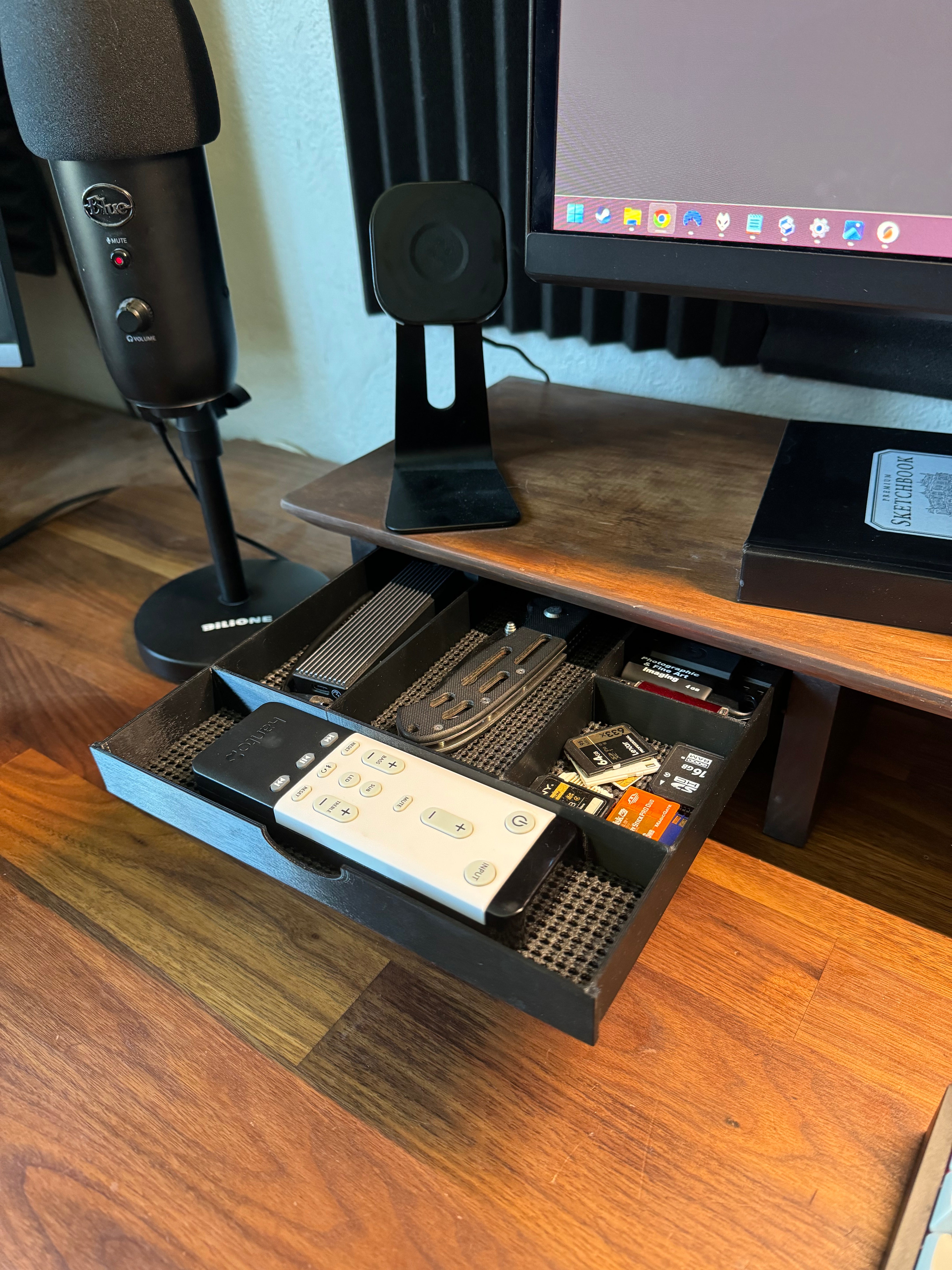 Whether you need space for office supplies, electronics, or simply want to maintain a more organized work surface, this desk shelf with drawers will transform your desk into a more efficient and tidy environment.