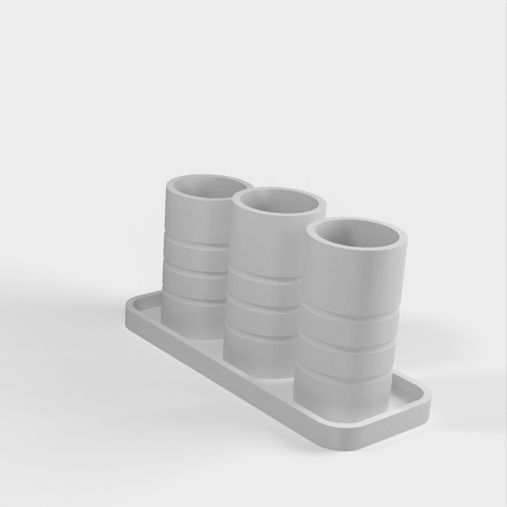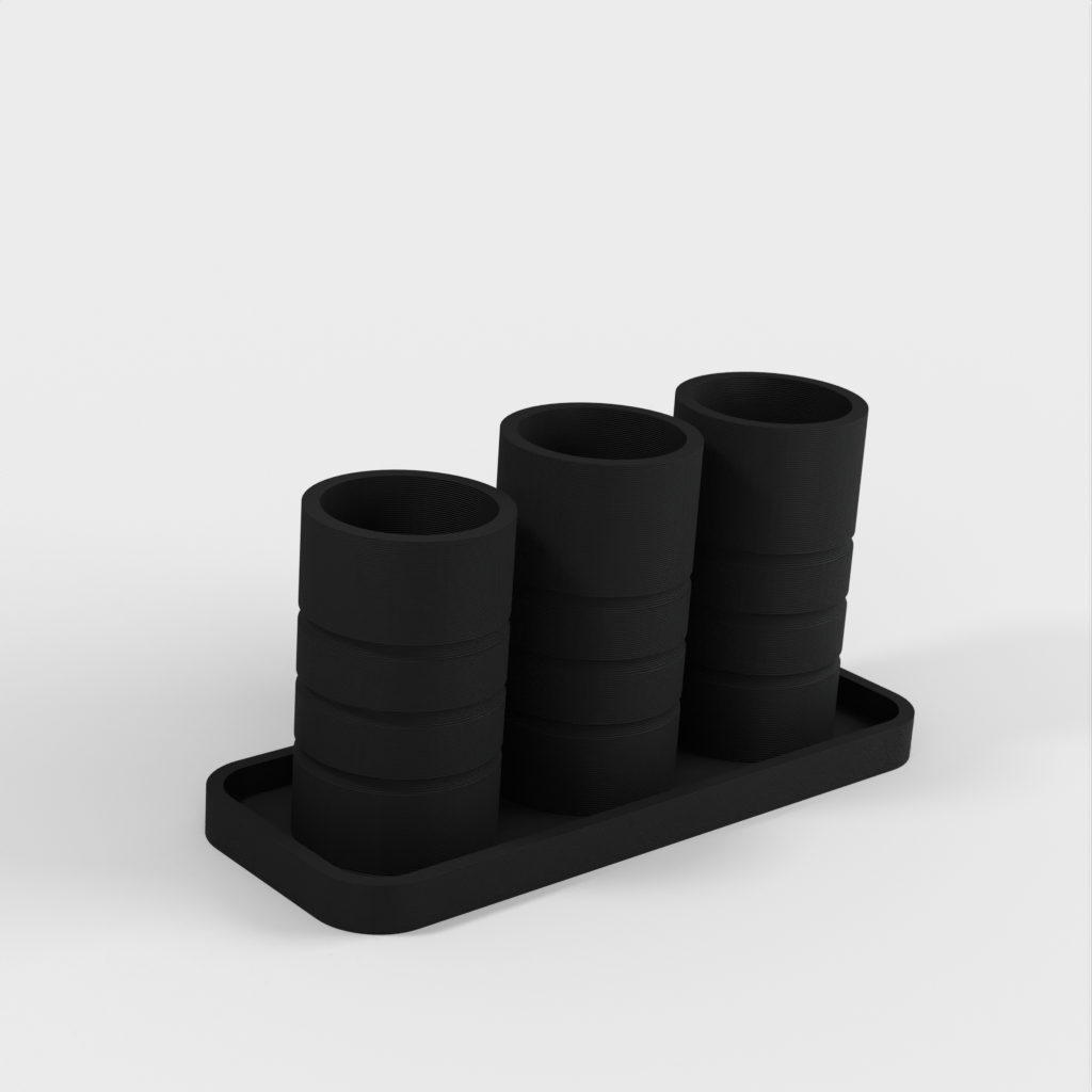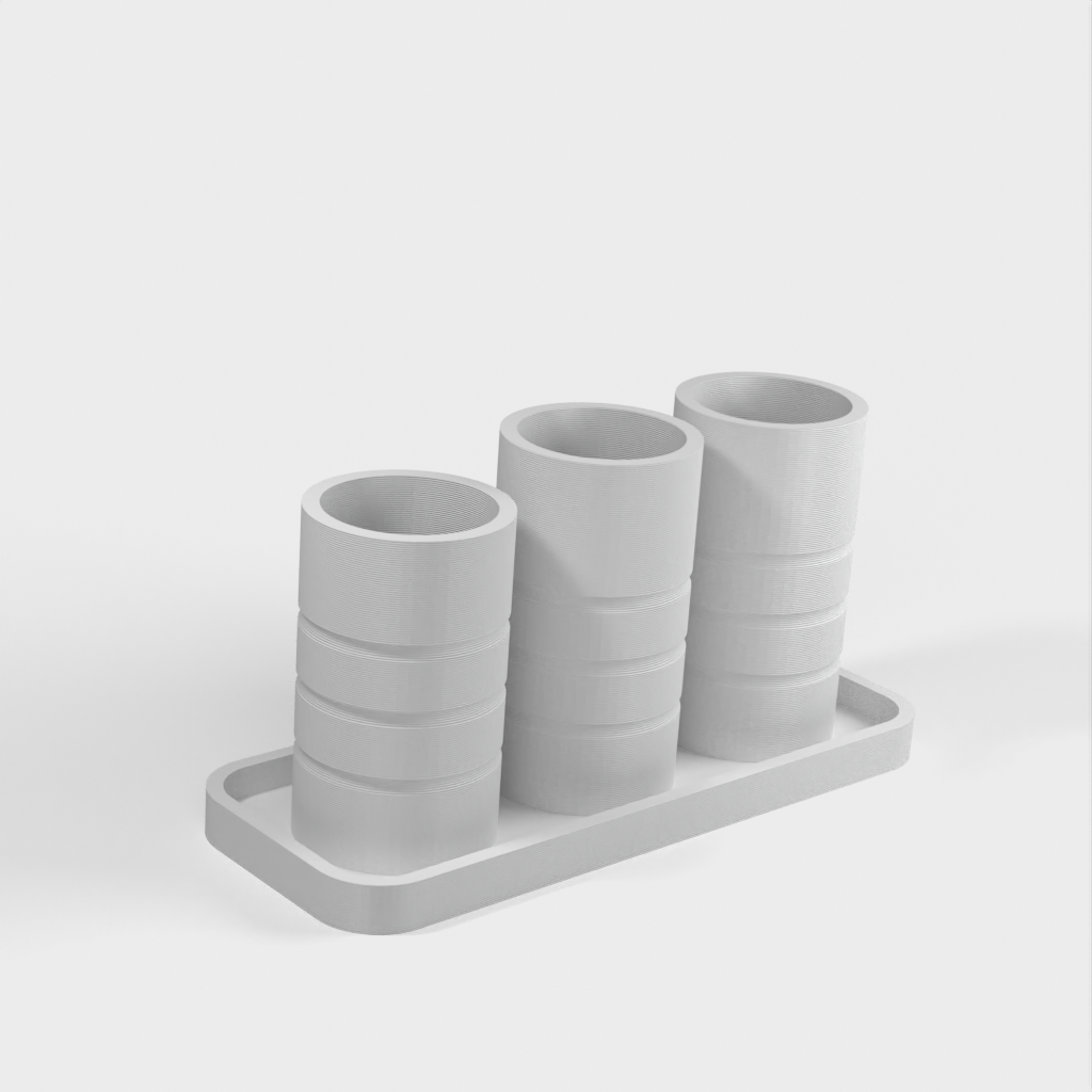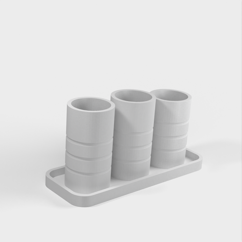En simpel badeværelsesorganisator med to primære holdere til tandbørster og en tredje til q-tips eller andre ting. Hjælp med at holde dit badeværelse ryddeligt og organiseret.