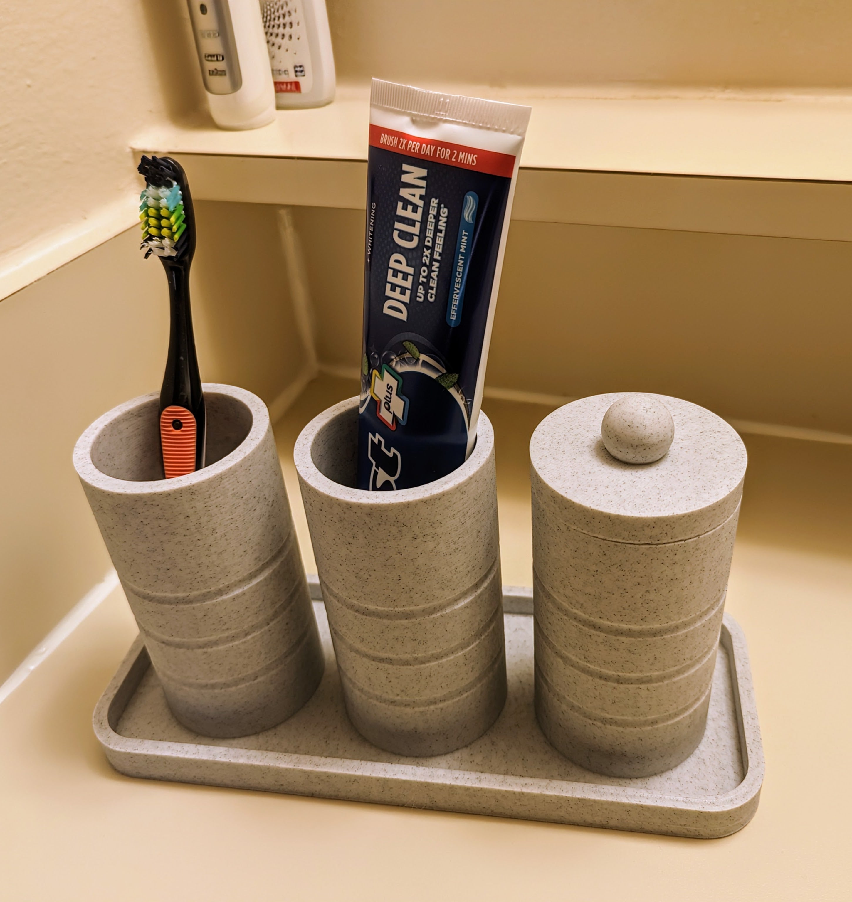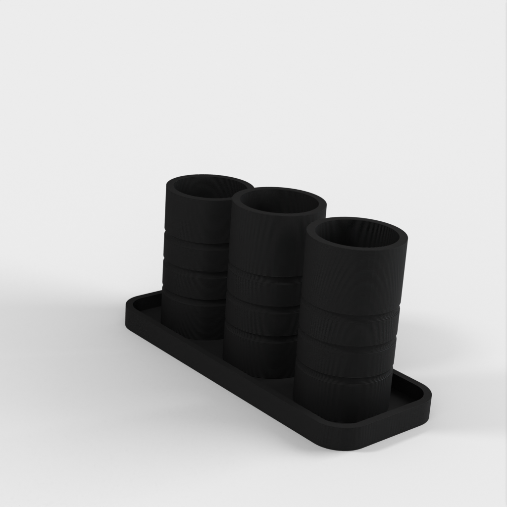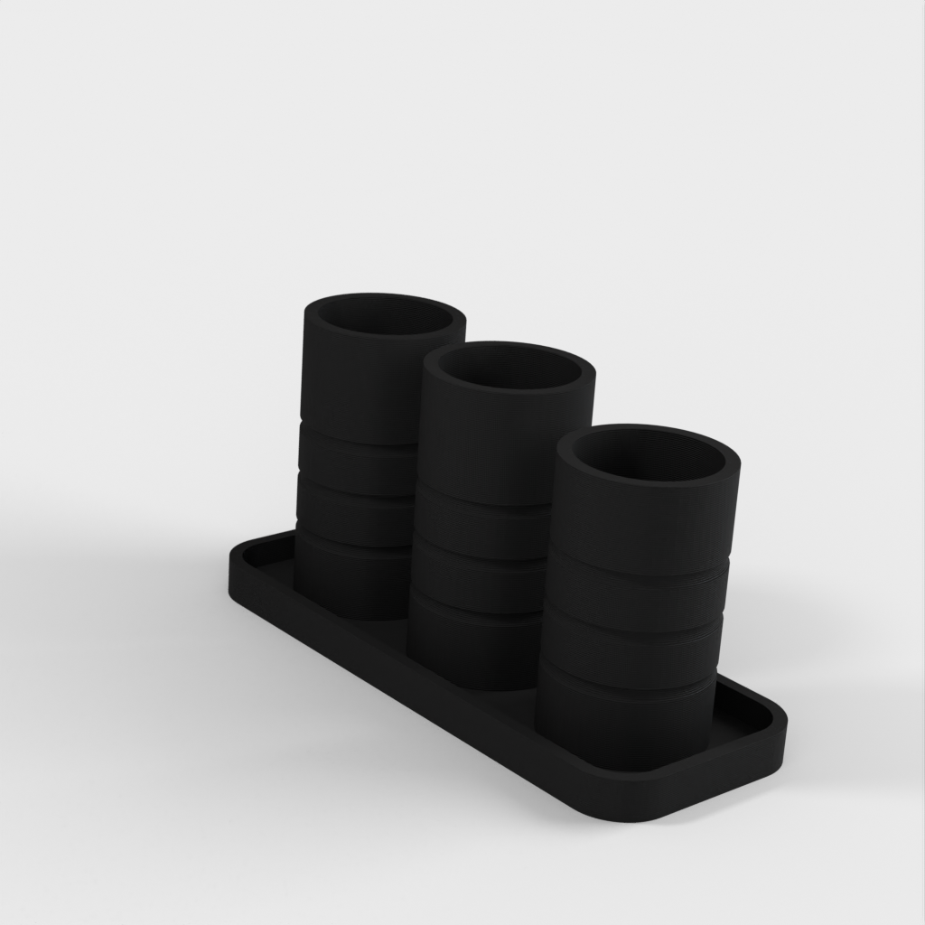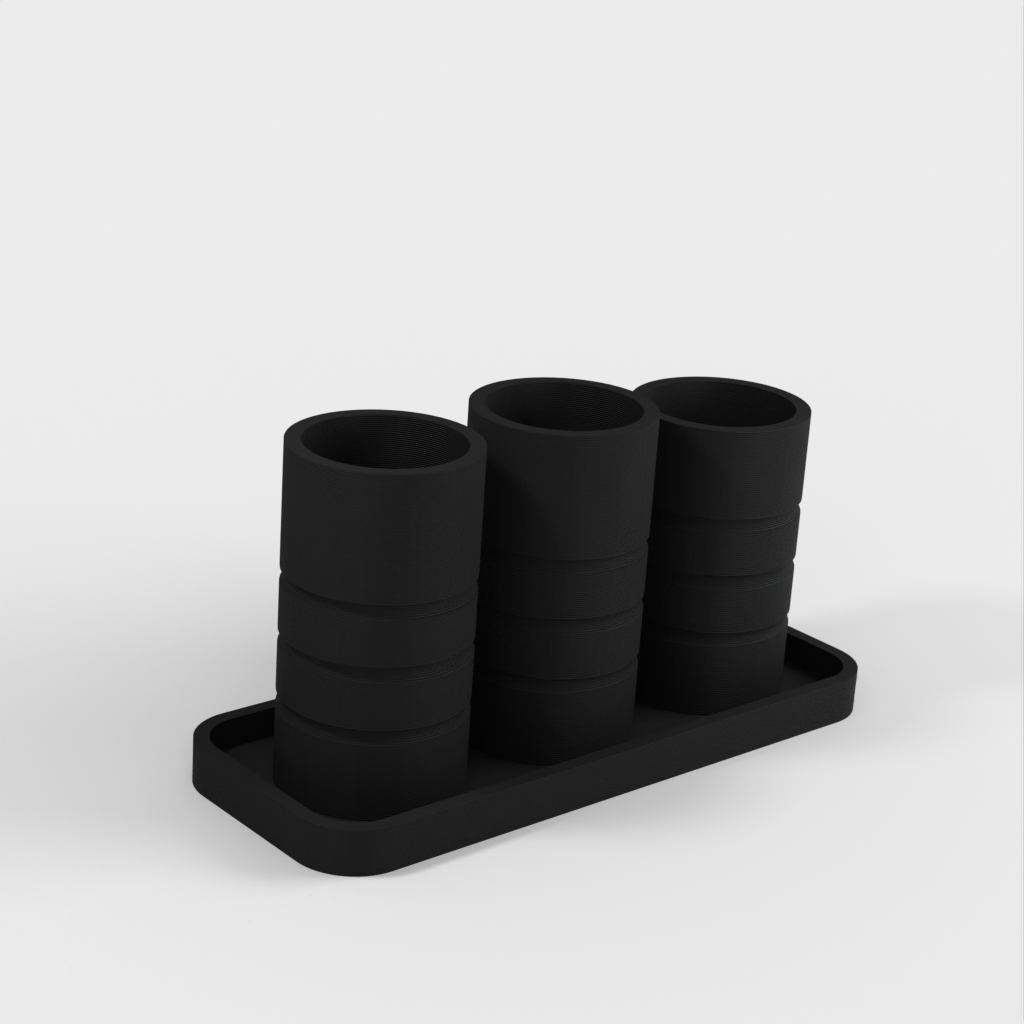 En simpel badeværelsesorganisator med to primære holdere til tandbørster og en tredje til q-tips eller andre ting. Hjælp med at holde dit badeværelse ryddeligt og organiseret.