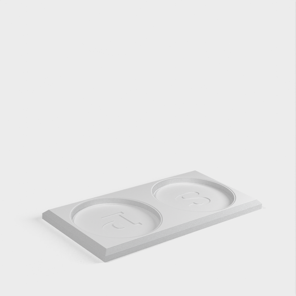 Enkel base til salt- og peberkværne. Designet til at passe til Cole & Mason kværne med 60mm baser. "S" og "P" er hævet med 0,5mm, men kan nemt fjernes og remixes. Slots har en let skråning for æstetik.