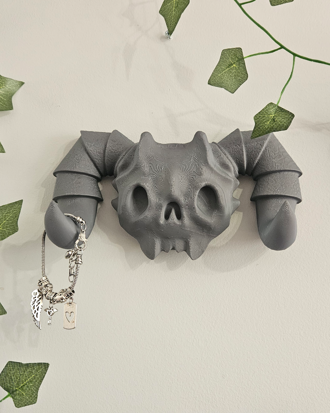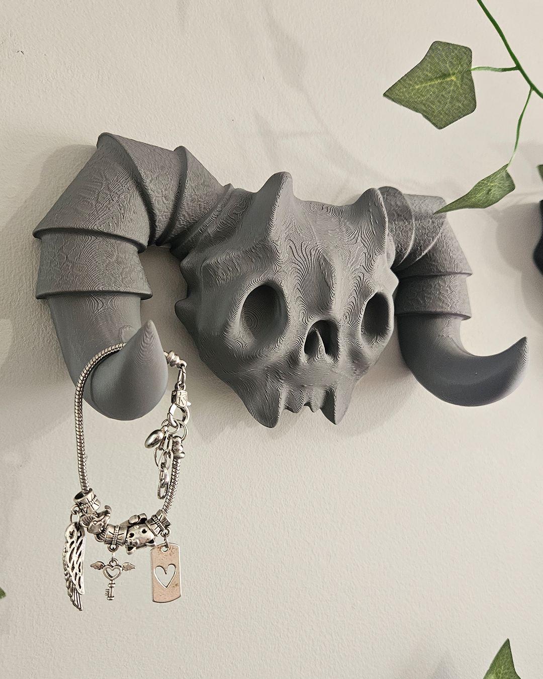 Tilføj et unikt og iøjnefaldende element til din hjemmeindretning med denne Dæmonkranie Vægkrog. Dette detaljerede kranie med horn fungerer både som et spændende dekorativt objekt og en praktisk løsning til opbevaring.