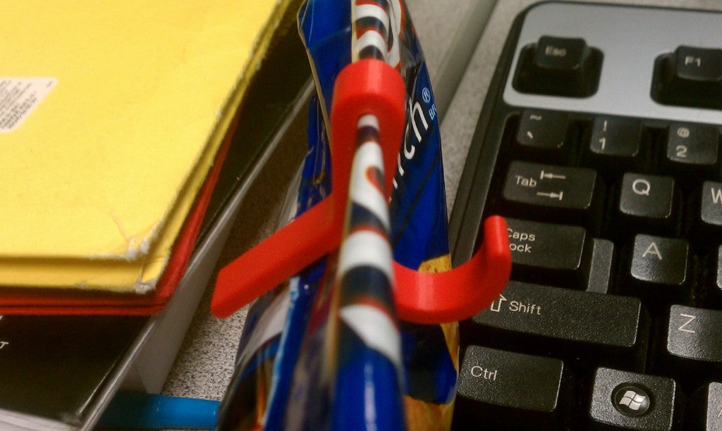 Enkel taskeklip designet til nemt at lukke åbne poser af forskellige typer. Det er kun nødvendigt at folde toppen af posen et par gange og derefter lægge klipset over den foldede kant. Denne enkle, men effektive, lille gadget er velegnet til brug i køkkenet, og til hjemmet generelt, for at holde indhold som brød og chips frisk.
