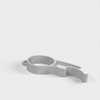 Enkel flaskeåbner egnet til både twist-off og pry-top flasker. Du kan nemt fastgøre produktet til din nøglering ved hjælp af det lille øje.