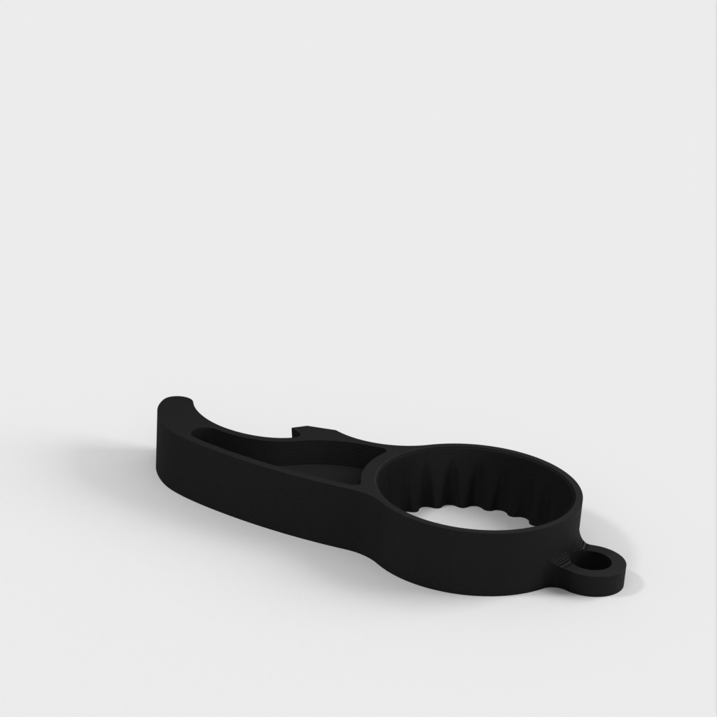 Flaskeåbner til nøglering, både til skrue- og hættoppe