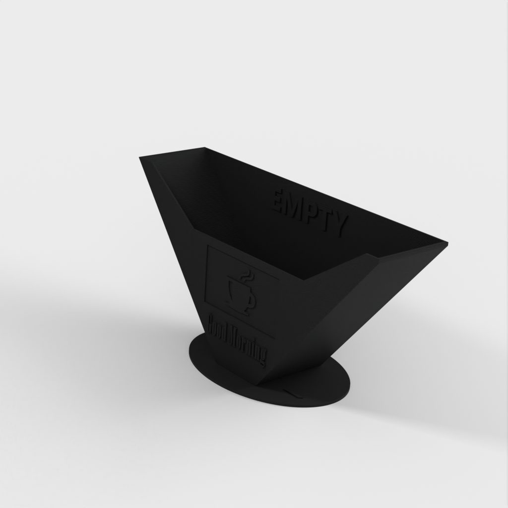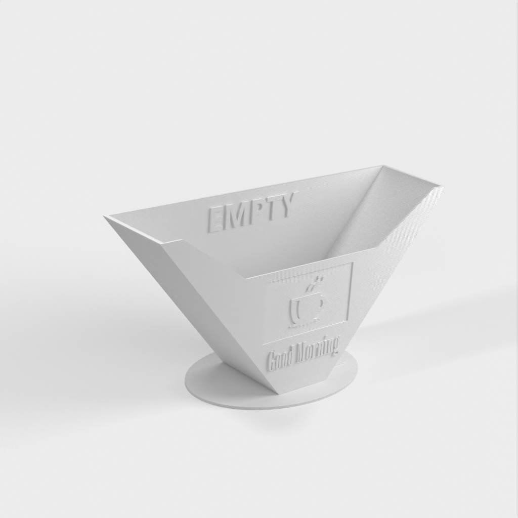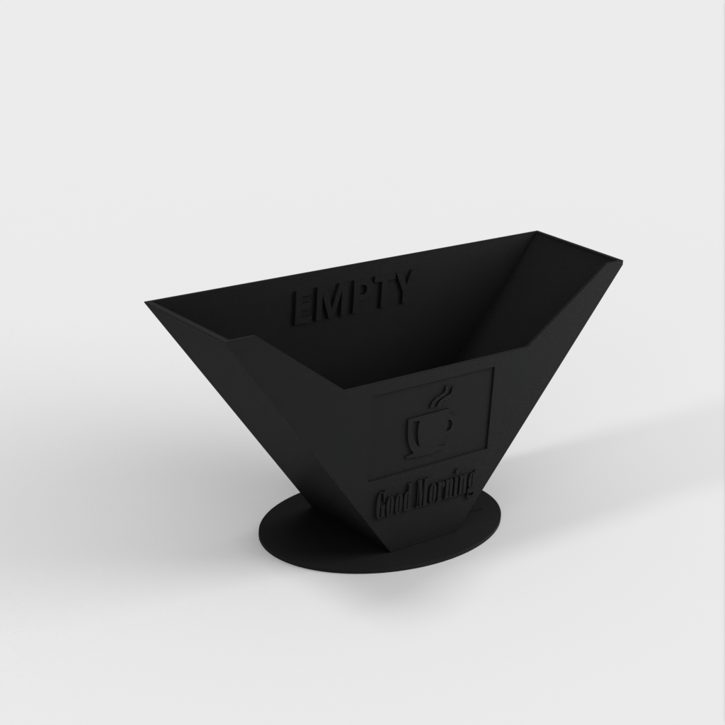 Dette er en kaffefilter holder, jeg har lavet i 3D builder. Den er designet til at holde dit kaffefilter på plads, mens du laver din morgenkop kaffe. Den er meget nem at bruge og passer til de fleste standard kaffefiltre.