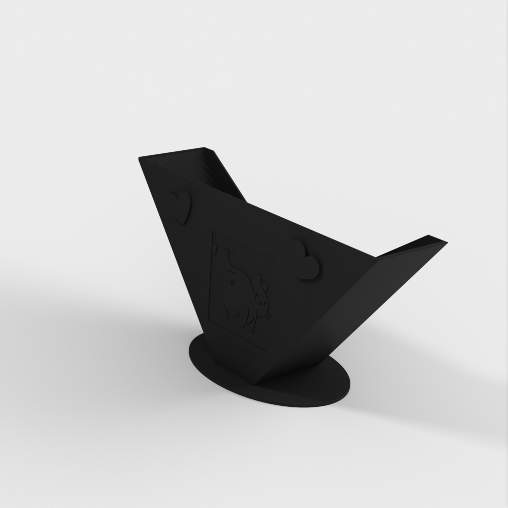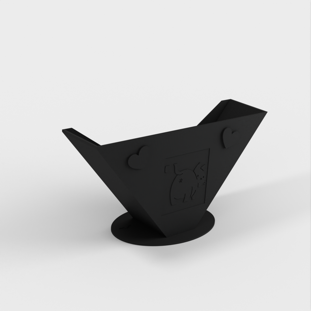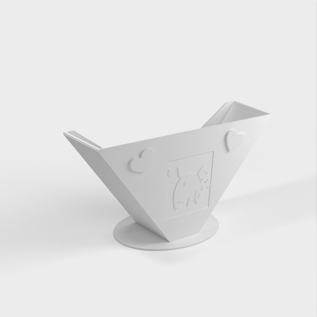 Dette er en kaffefilter holder, jeg har lavet i 3D builder. Den er designet til at holde dit kaffefilter på plads, mens du laver din morgenkop kaffe. Den er meget nem at bruge og passer til de fleste standard kaffefiltre.