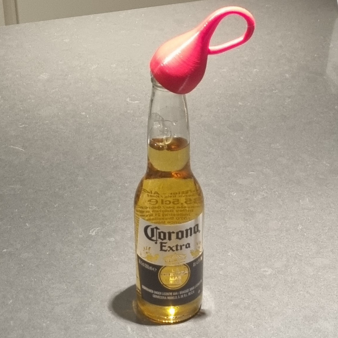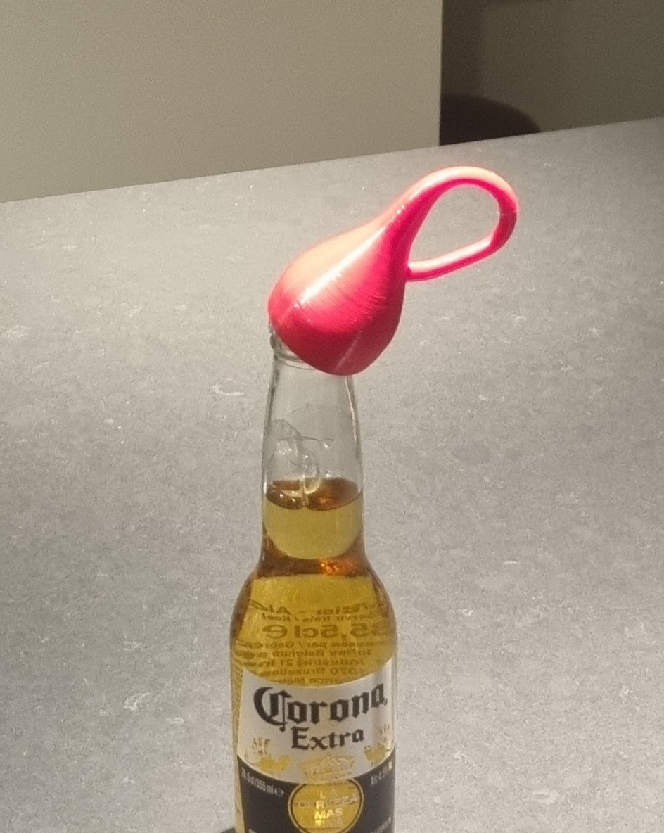 En flaskeåbner i form af en Klein-flaske, et 4-dimensionelt objekt der ikke har nogen forskel mellem ind- og yderside. Bemærk, måske er denne print kun i stand til at åbne normale flasker, desværre ikke Klein-flasker.