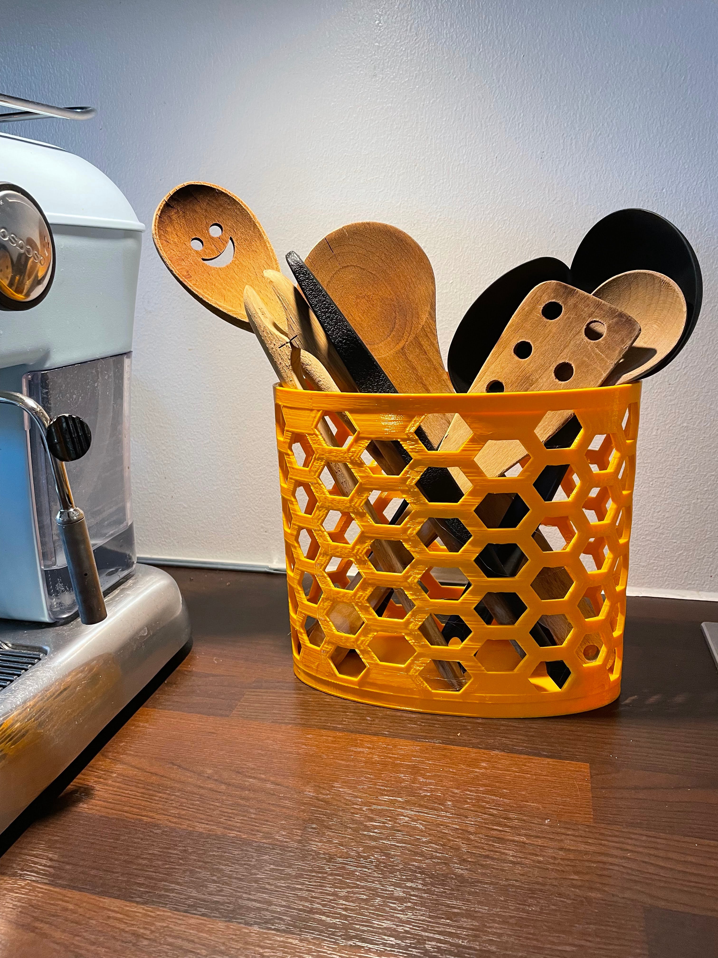 Dette er en slank køkkenredskabsholder, der er perfekt til opbevaring af dine vigtige køkkenredskaber. Den kompakte størrelse gør den ideel til ethvert køkken, og farven Melonengelb vil tilføje et pop af farve. Denne redskabsholder er 200% større på x-aksen og 80% mindre på y-aksen sammenlignet med en standard-model.
