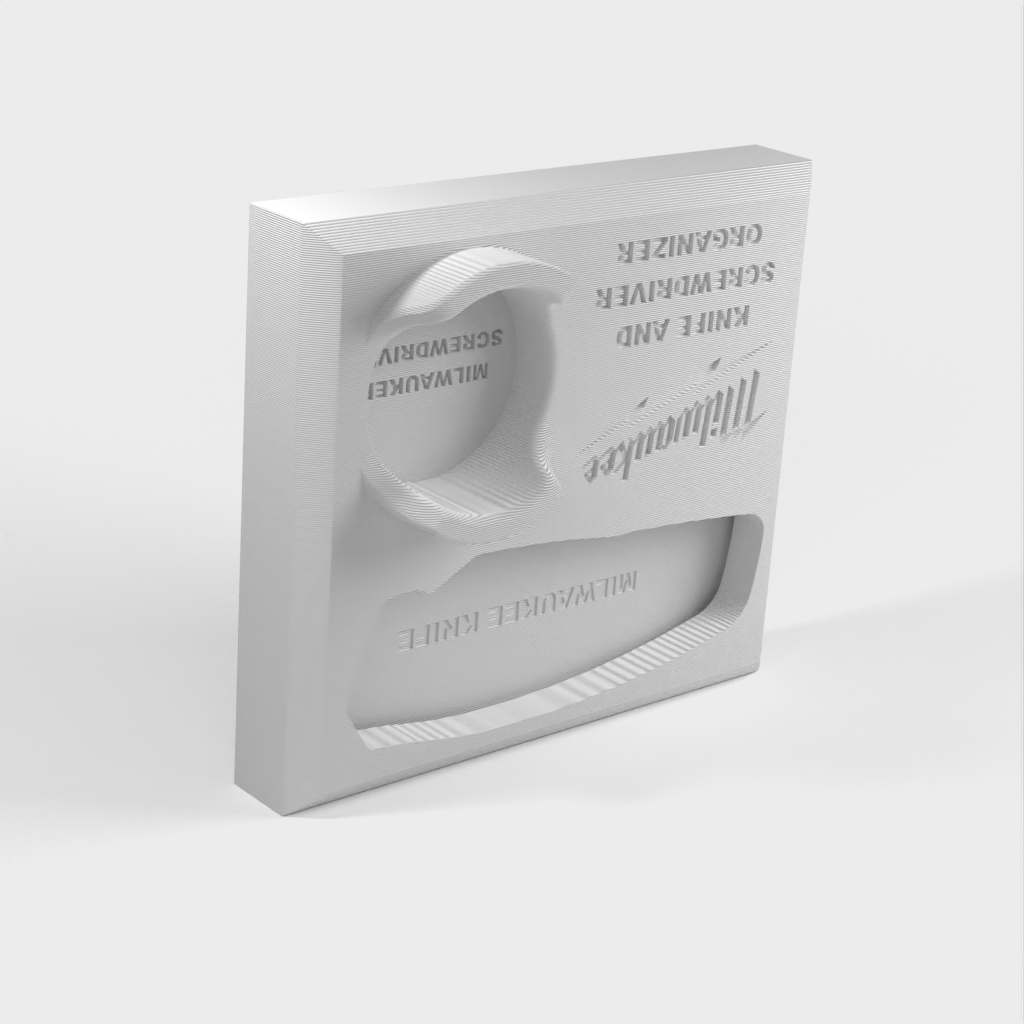 Dette er en Milwaukee advent arrangør, designet specifikt til at rumme produkter fra Milwaukee adventskalender. Den opbevarer effektivt hidtil præsenterede genstande som kniven og 8-i-en skruetrækker. Den printes i én del og giver dig mulighed for at organiserer dine Milwaukee værktøjer med stil og effektivitet. Nyd din 3D-udskrivning.
