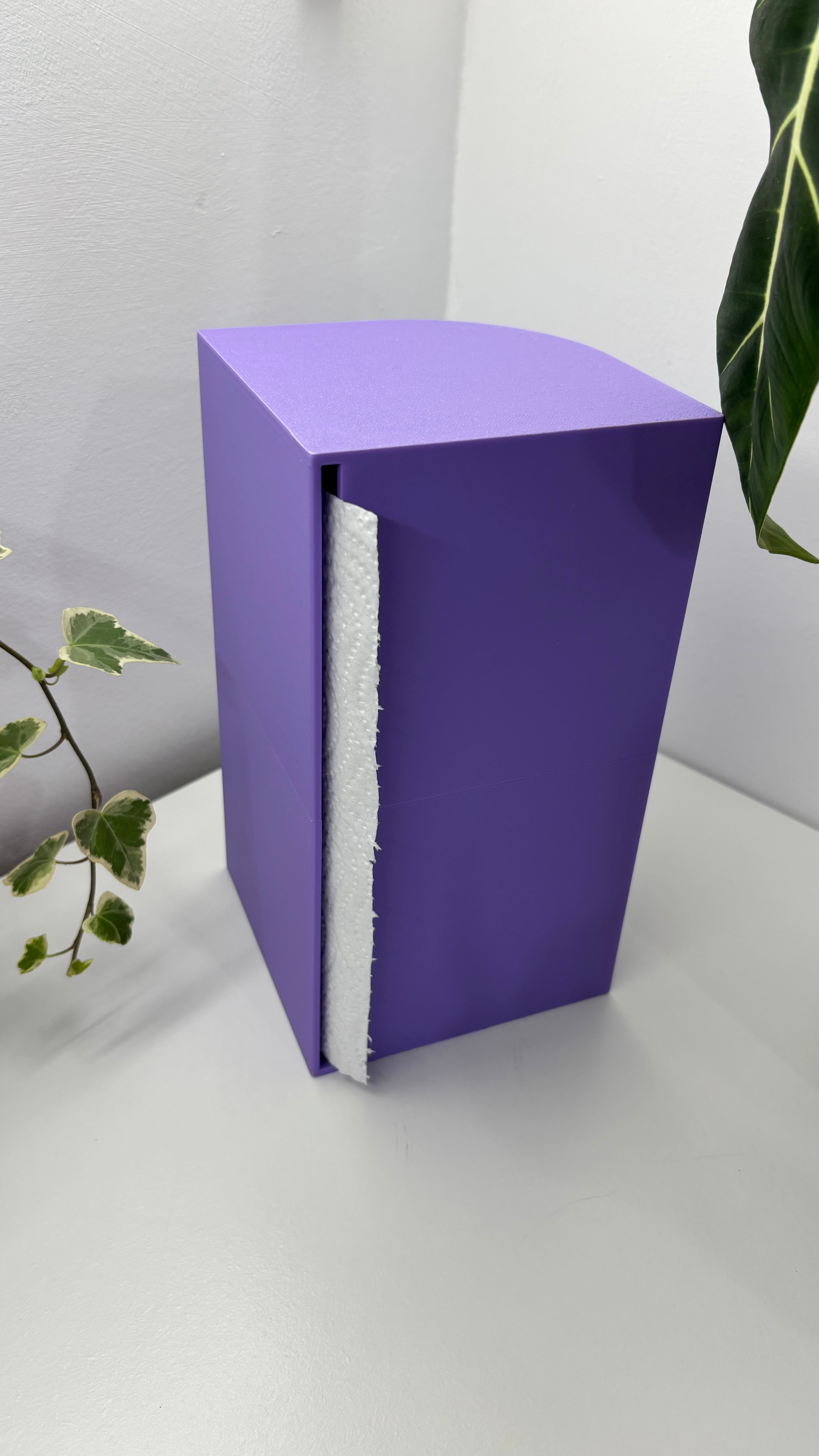Denne 3D-printbare holder inkluderer en afrundet, cirkulær kant på den ene side, som gør det ubesværet at trække papir af, uanset om det er fra toppen eller siden. Det minimalistiske design passer smukt ind som et funktionelt og stilfuldt element i ethvert moderne hjem, og tilbyder et praktisk tilbehør til både badeværelses- og køkkenartikler.