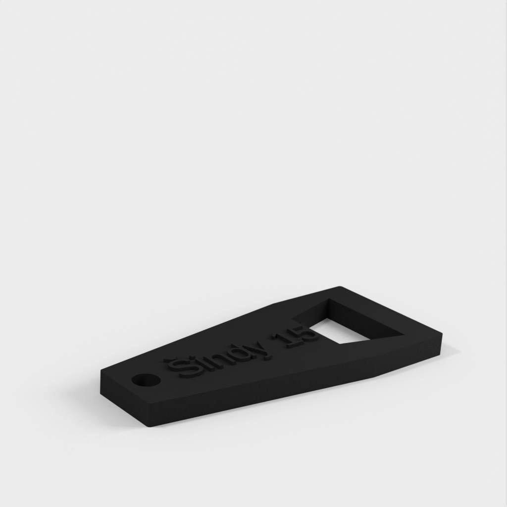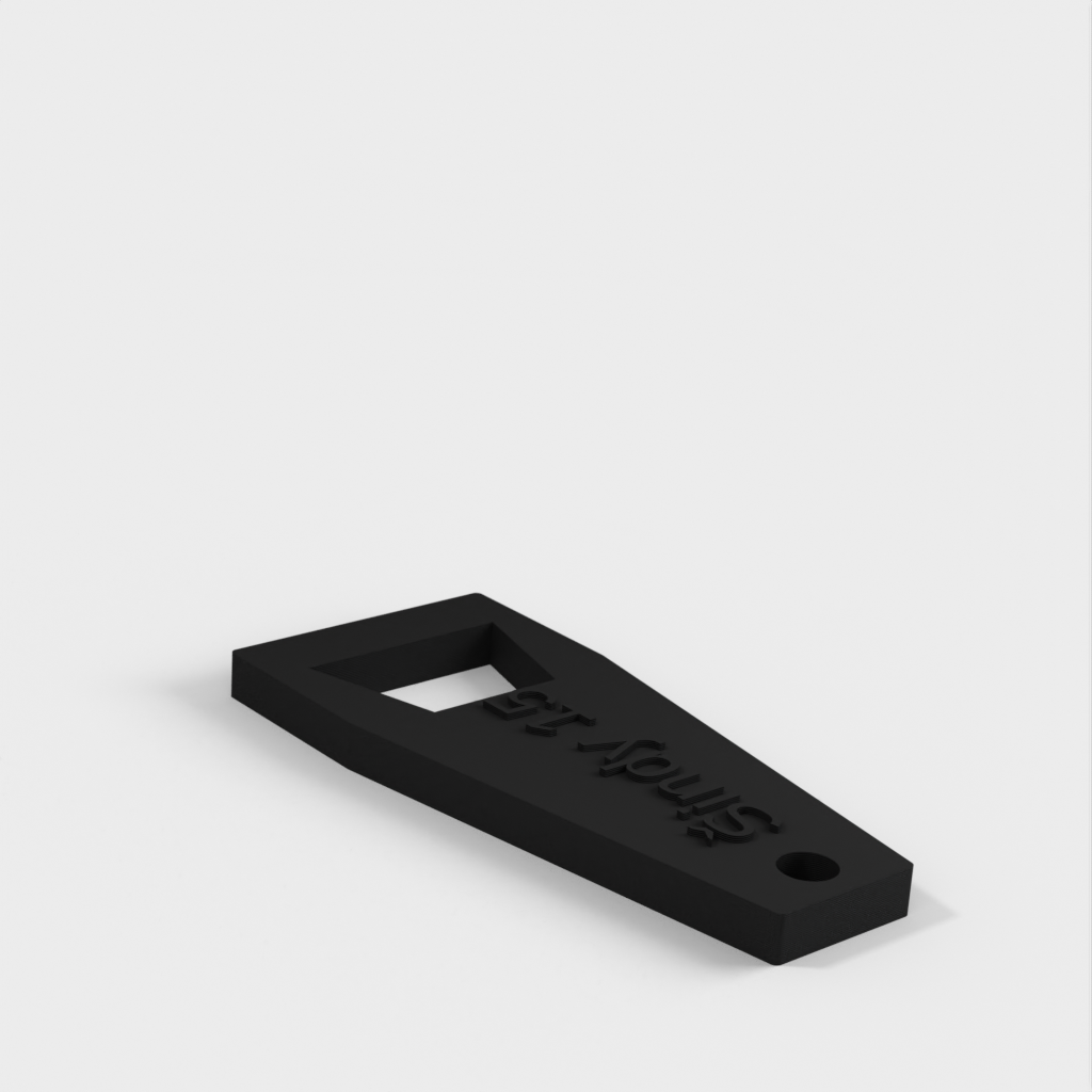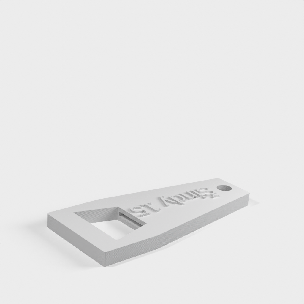 Ølflaskeåbner inspireret af Prusa, som bruger en mønt. Husk at opsætte printpause for at kunne indsætte mønten, og eventuelt også opsæt en ændring af filamentet for at printe dekorationen i en anden farve. For at ændre dekorationsteksten og få den seneste version, se repository med en OpenSCAD kode.