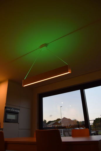 Udstyret med to Gledopto controllere, tilbyder denne loftlampe en bred vifte af belysningsindstillinger. Fra en klar, fokuseret belysning til arbejde i køkkenet til en varm, dæmpet glød for en afslappende aften i stuen, kan du skabe den ideelle atmosfære. Den smarte belysning giver dig friheden til at eksperimentere med farver og nuancer for at matche dit humør eller din indretning.