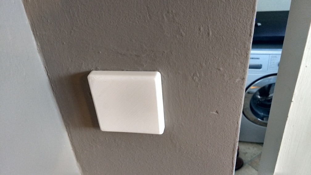 Dette er et dækning, jeg har designet, som bør glide over enhver firkantet lyskontakt. Det er skabt for at stoppe lysomskiftere fra at blive slået fra ved et uheld, når et hus bruger Philips Hue-pærer med hjemmeautomatisering. Den har en lille udskæring i bunden for at gøre det let at fjerne, hvis du har brug for at bruge kontakterne.