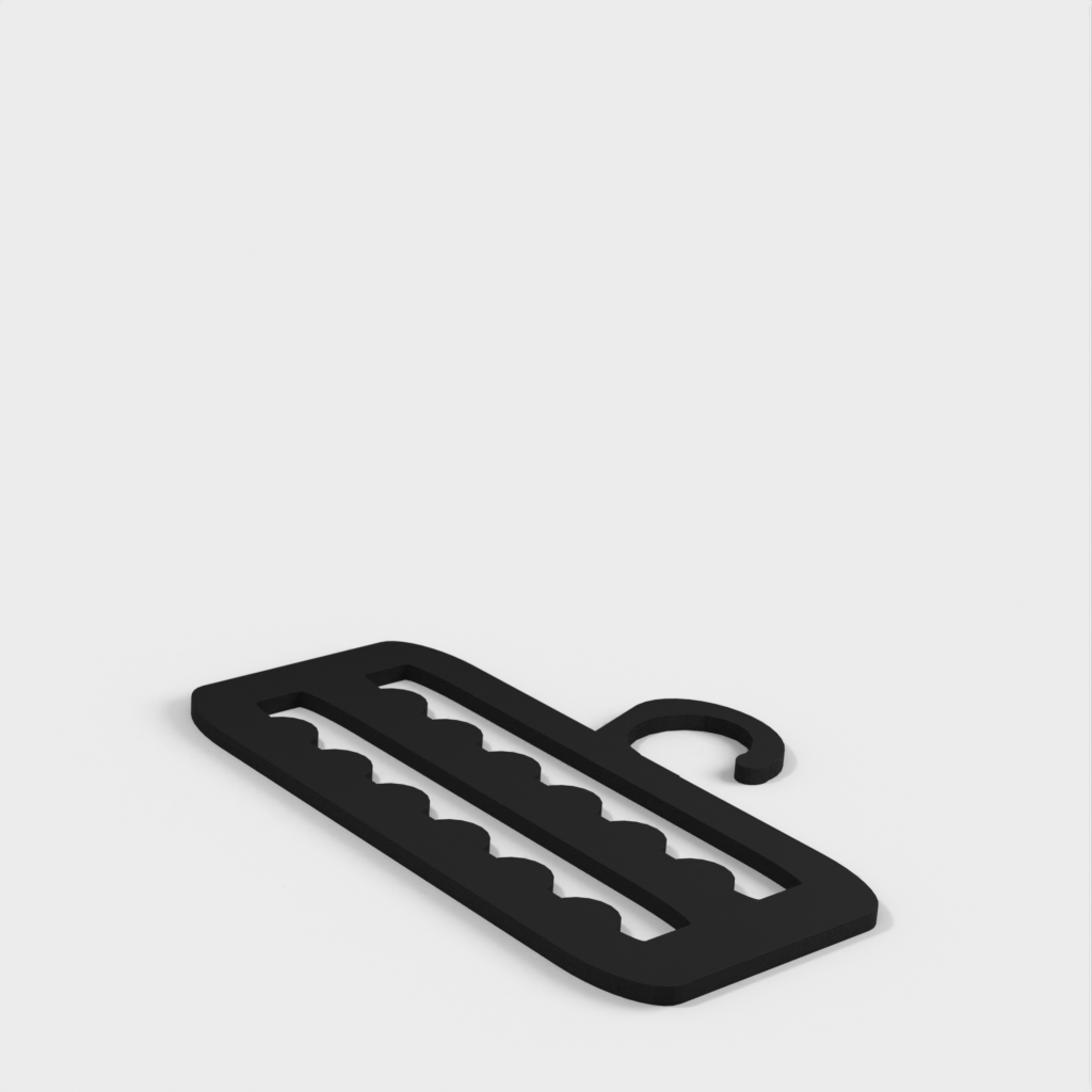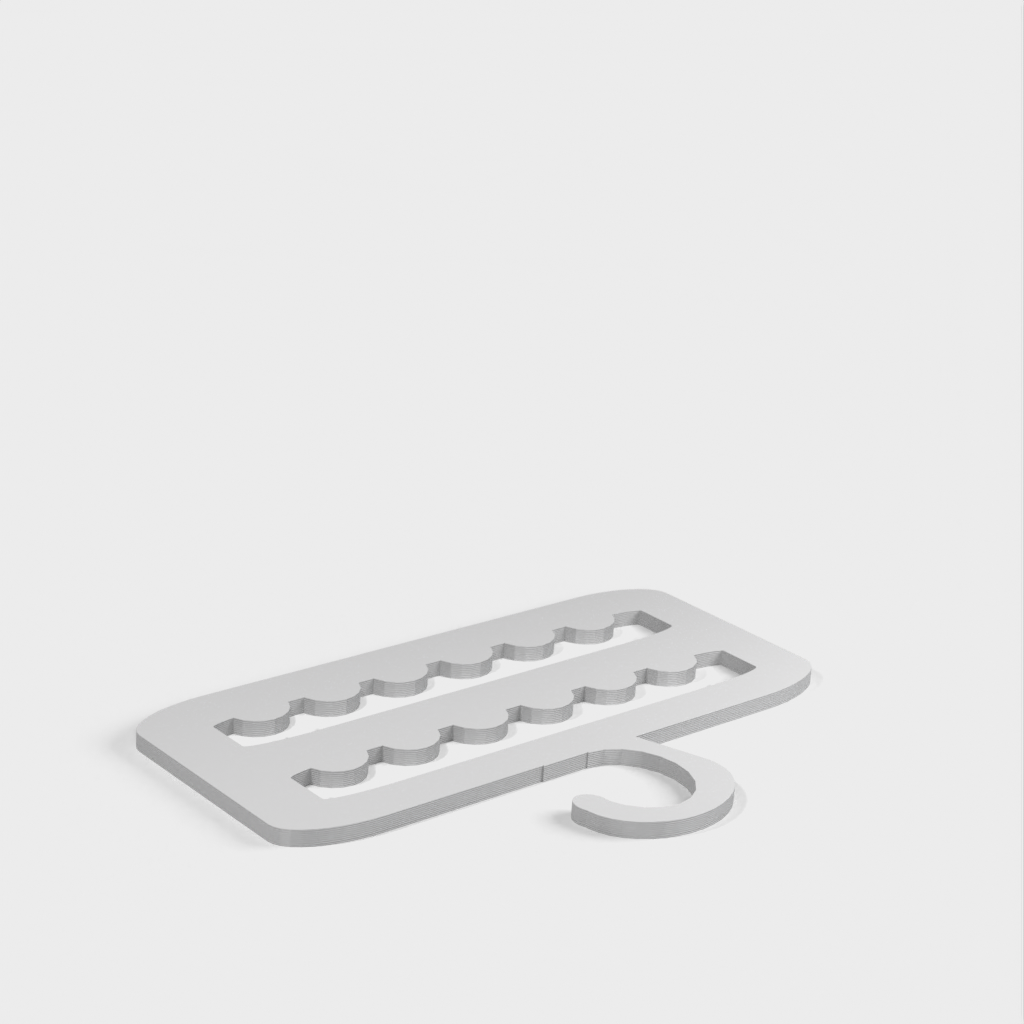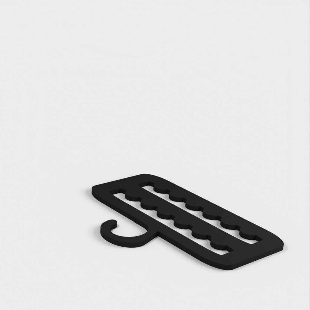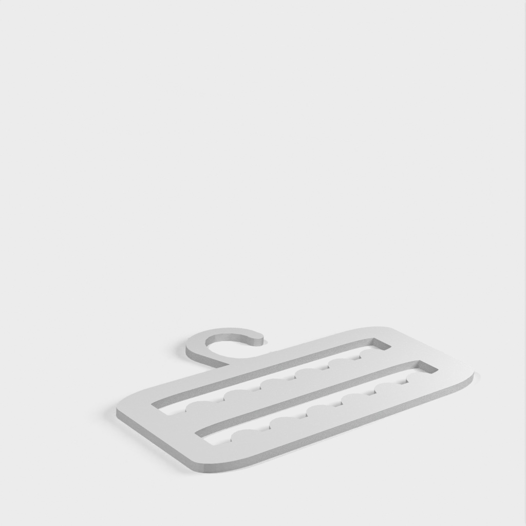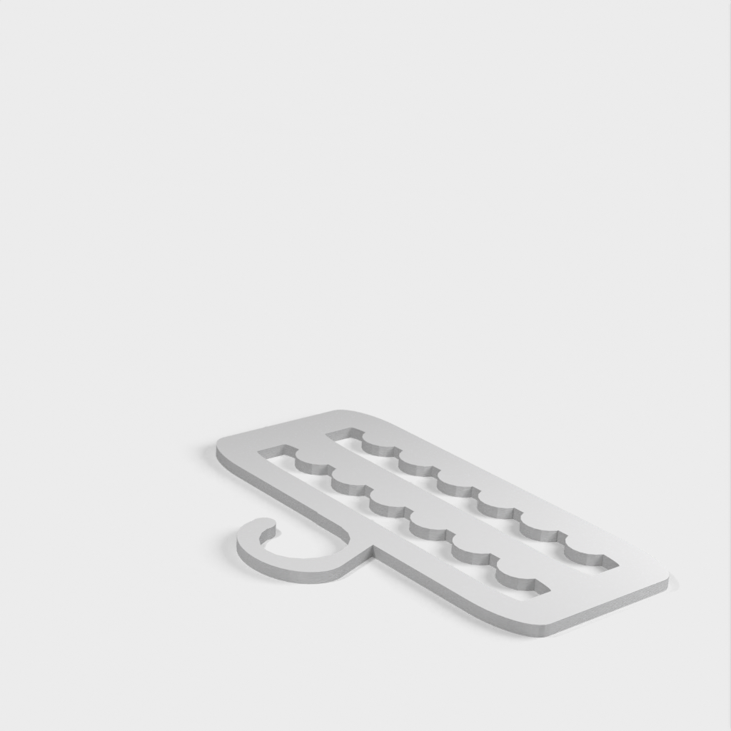 Enkel ophængningspose-clip er designet til at lukke plastikposer. Den frie ende af posen skal blot strækkes gennem begge pladser. De afrundede riller forhindrer posen i at glide ud af clippen.
