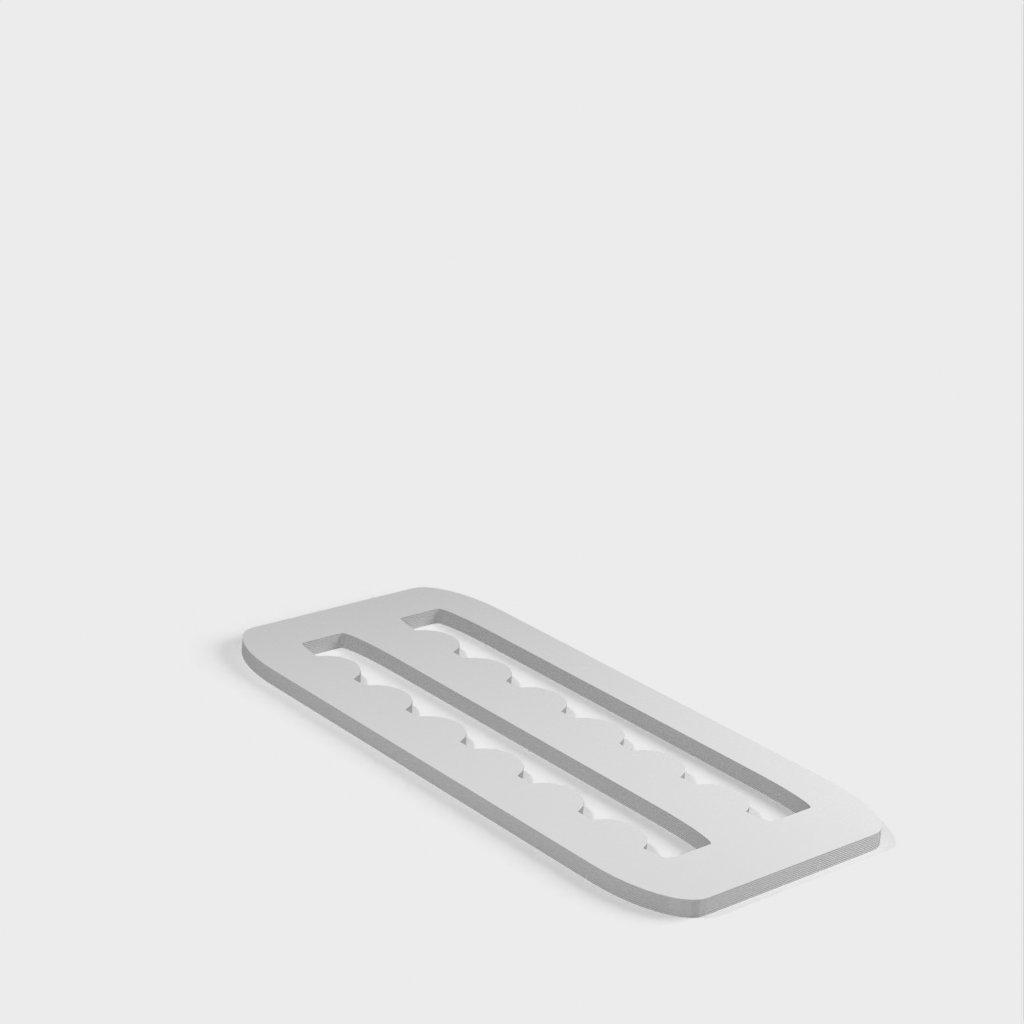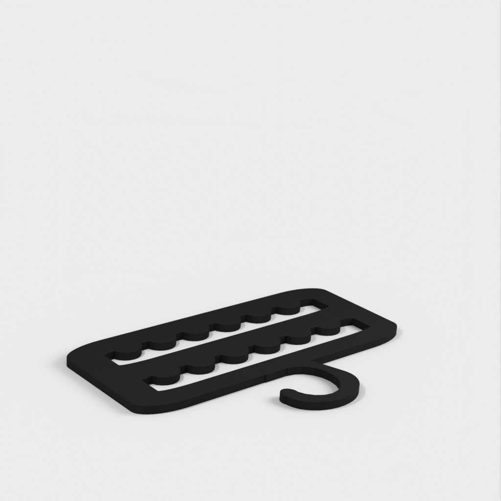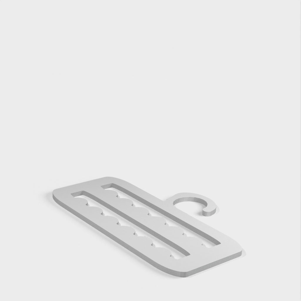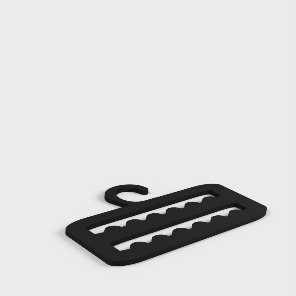 Enkel ophængningspose-clip er designet til at lukke plastikposer. Den frie ende af posen skal blot strækkes gennem begge pladser. De afrundede riller forhindrer posen i at glide ud af clippen.