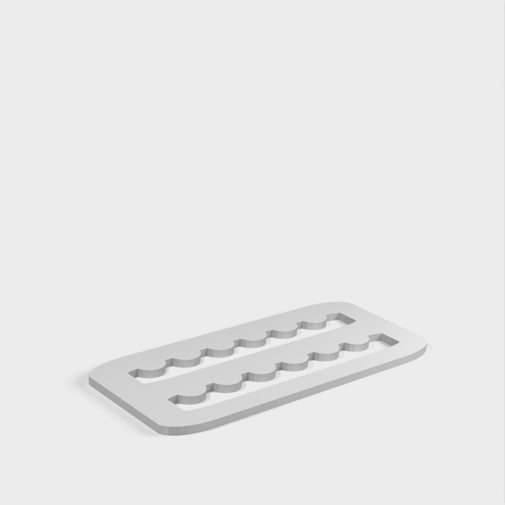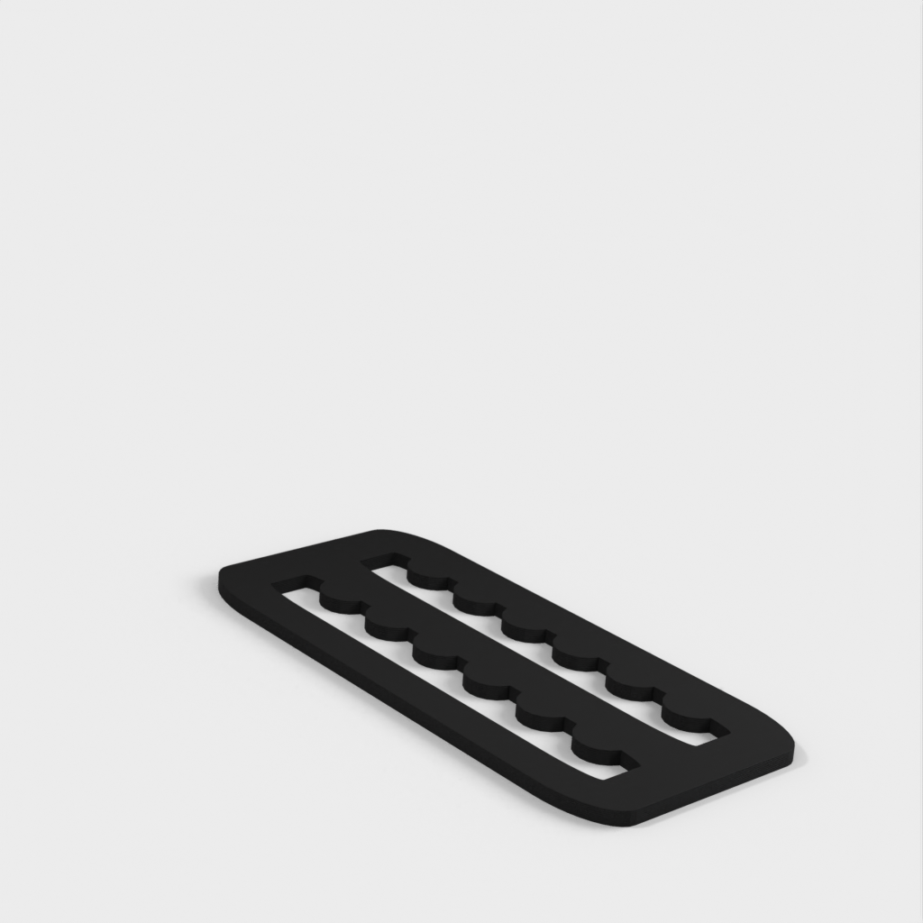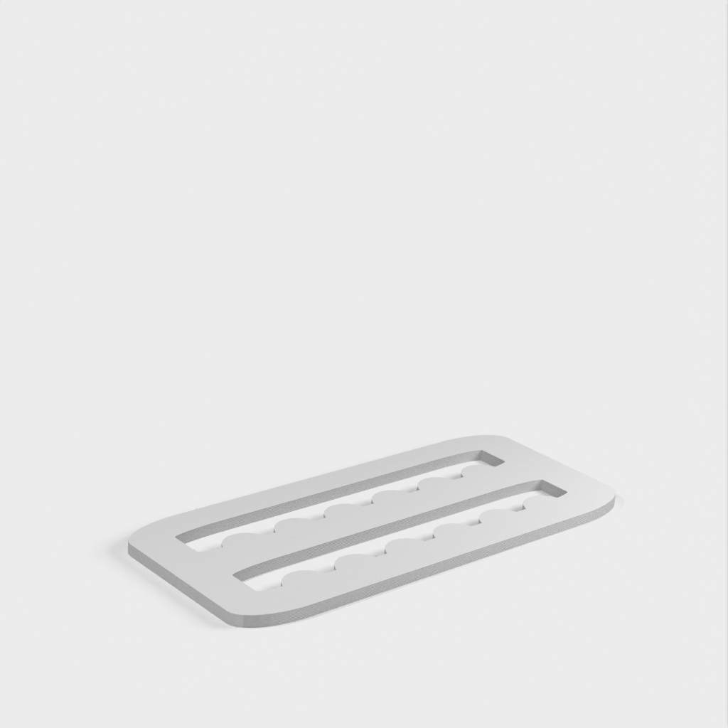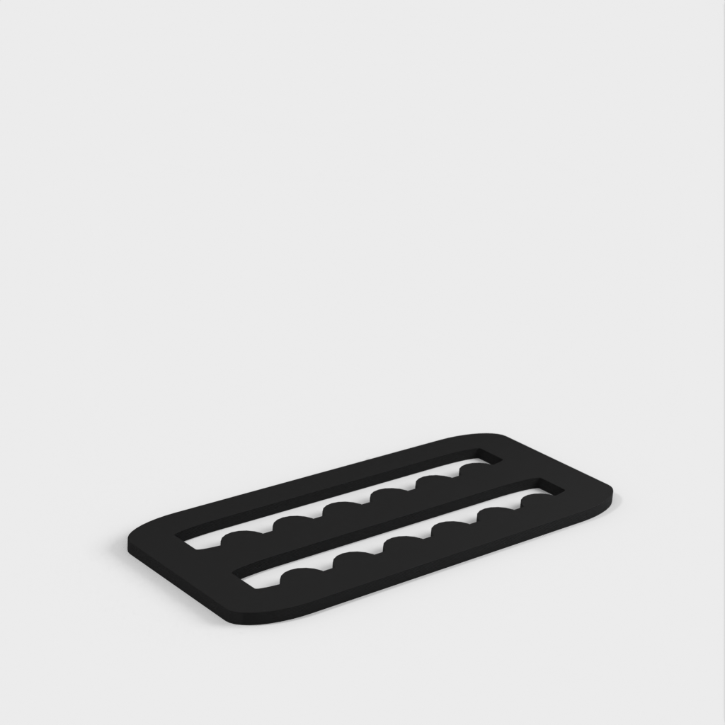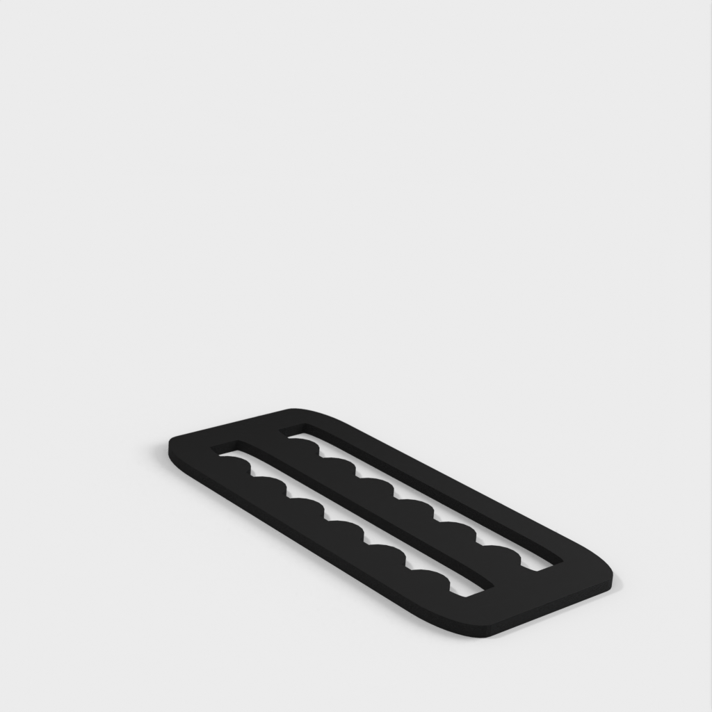 Enkel ophængningspose-clip er designet til at lukke plastikposer. Den frie ende af posen skal blot strækkes gennem begge pladser. De afrundede riller forhindrer posen i at glide ud af clippen.