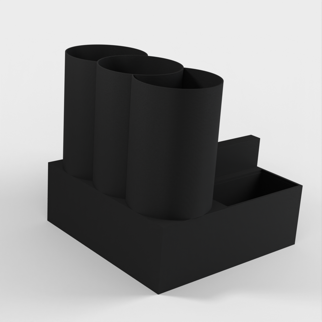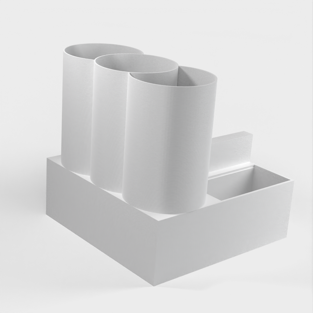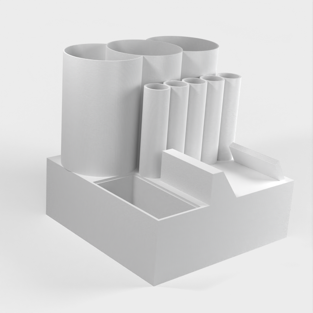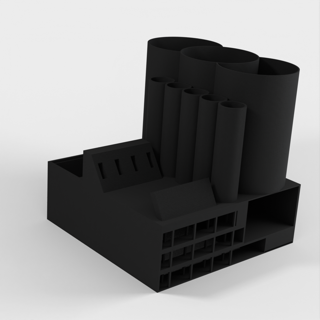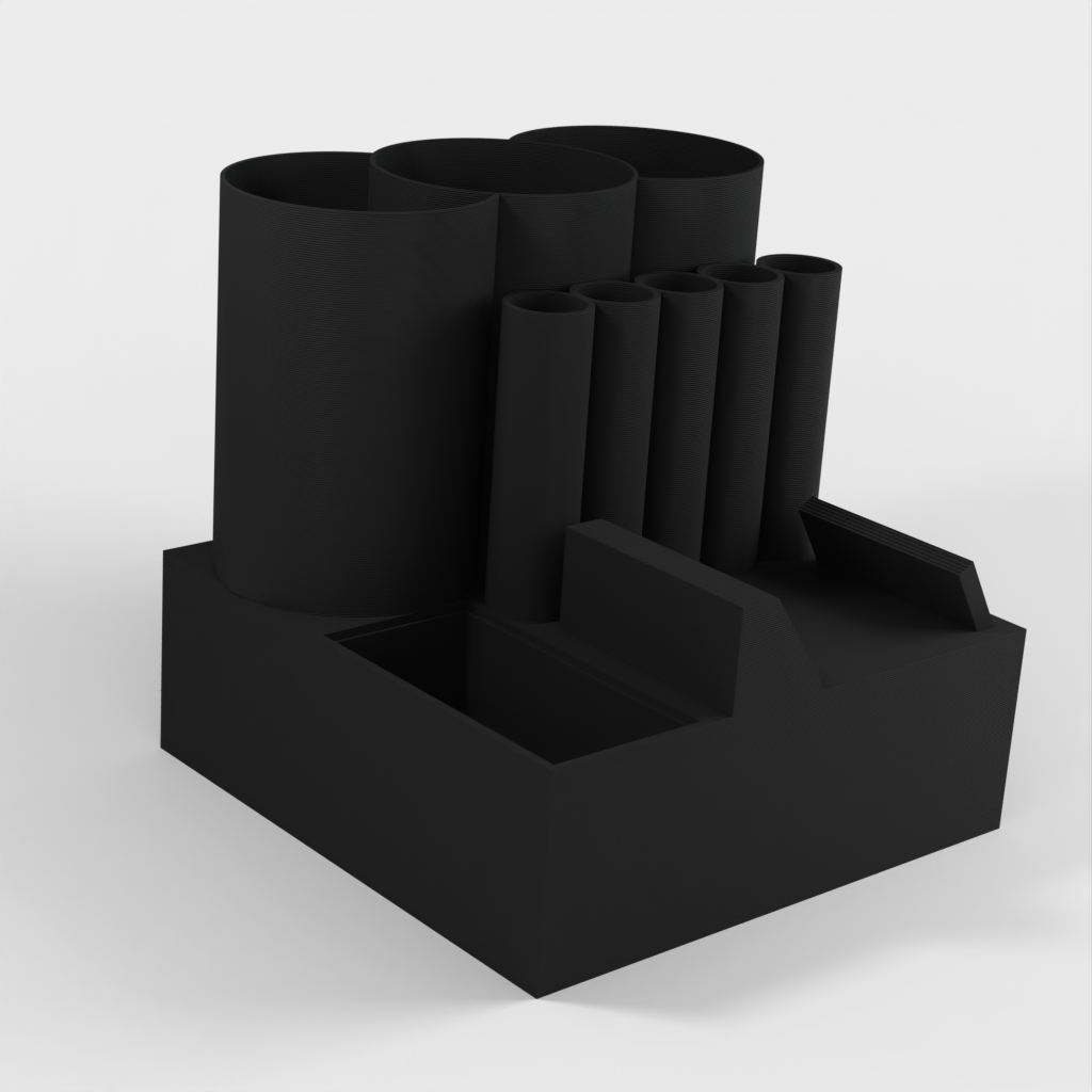 Navnepladen kan integreres, og der er flere store og mindre opbevaringsrum til penne, blyanter, markører eller andre skrivebordsartikler. Med vores skrivebord organizer er du sikret en ryddelig og velorganiseret arbejdsplads.