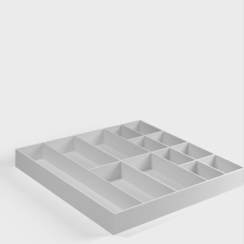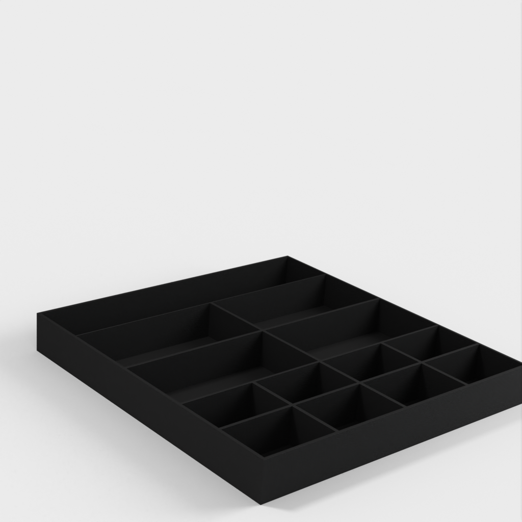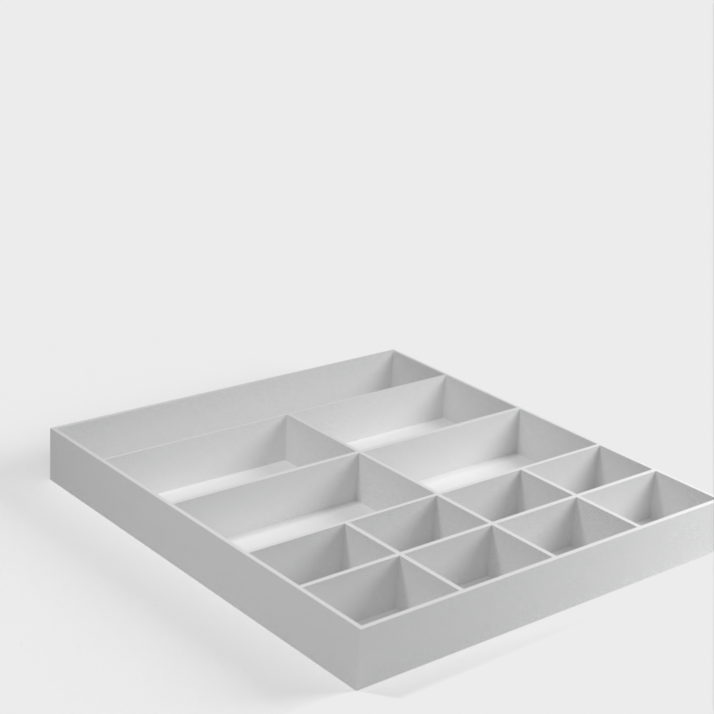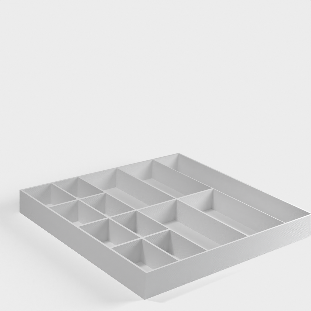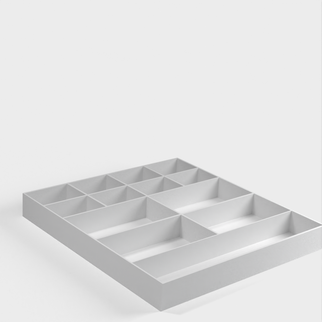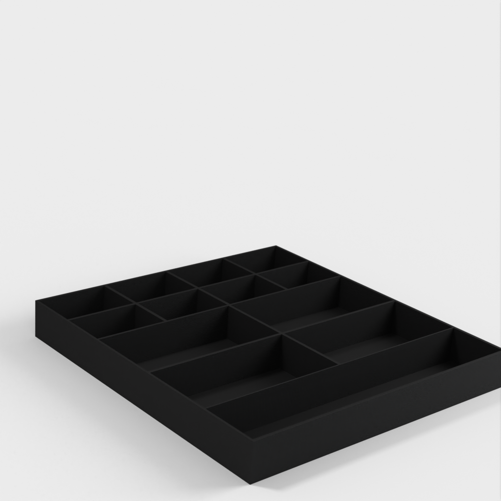 Dette er en skuffeorganisator, der er designet specifikt til skuffer. Den hjælper med at bringe orden og struktur til dine skuffer ved at separere og organisere indholdet på en klar og effektiv måde. Hold din skuffe ryddelig og godt organiseret med denne praktiske skuffeorganisator.