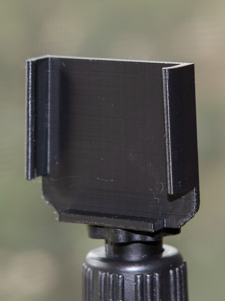 Stativ adapter til et Logitech C920/C930 kamera, der gør det muligt at sætte det på et mikrofonstativ, så det frit kan bevæges op og ned.