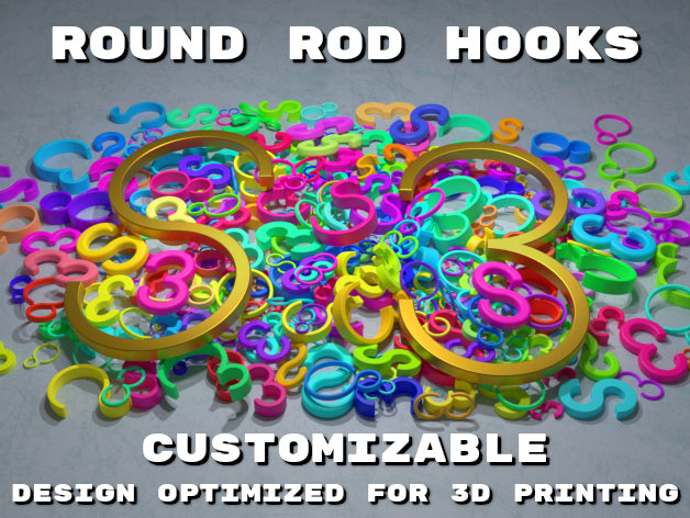 Disse skræddersyede runde stangkroge i form af S eller 3 er designet til nem 3D-printing. De har afrundede kanter, hvilket giver dem et kvalitetsudseende og -følelse. Krogene er skabt for at kunne holde fast på tøjstænger, brusestang, gardinstænger, dørhåndtag, cykelrammer osv., og vil blive siddende stramt på plads, medmindre der påføres kraft til at snappe dem af. Dette gør dem særligt praktiske til for eksempel at hænge våde håndklæder op på en håndklæde stang.