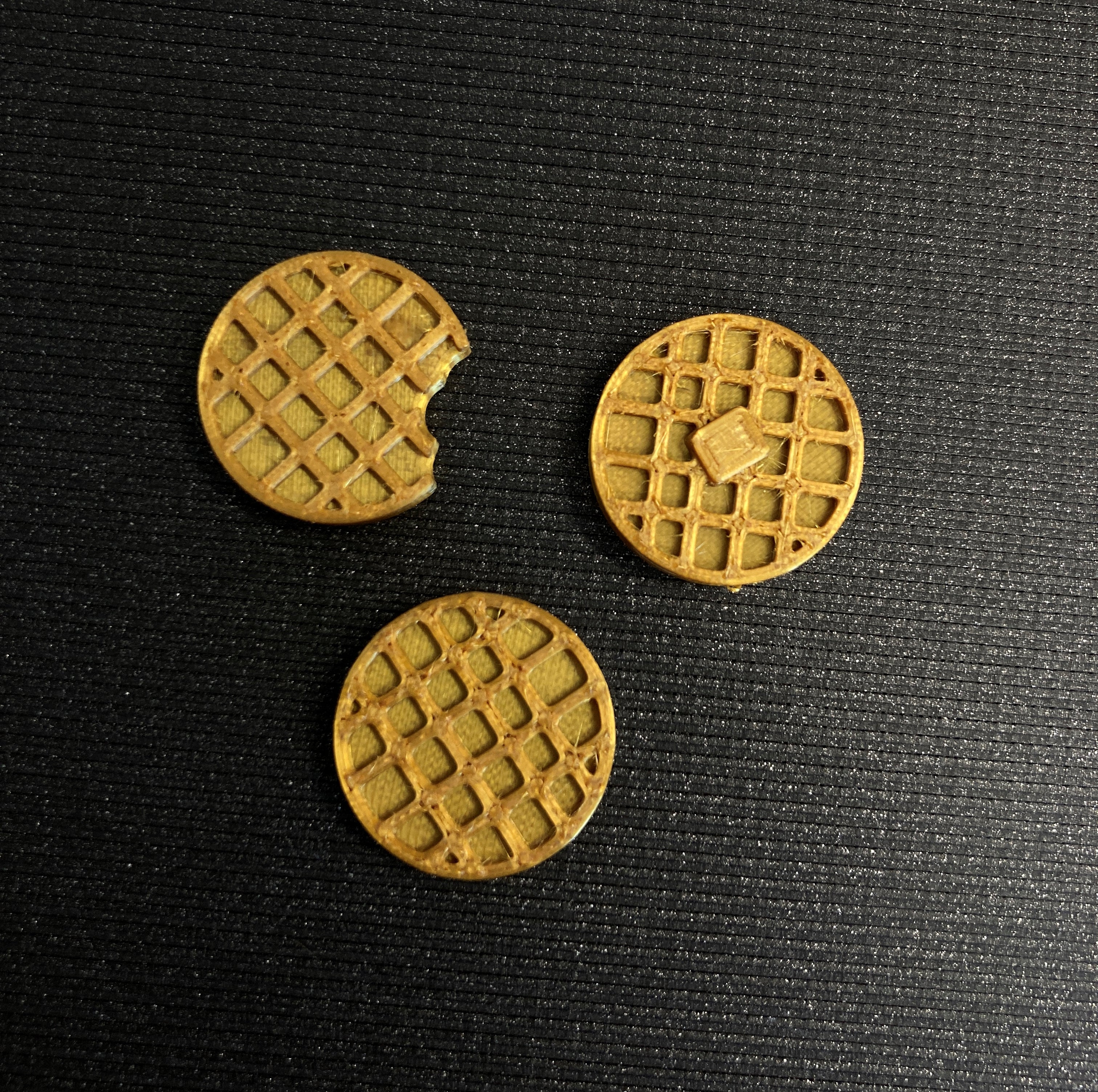 Dette sæt med køleskabsmagneter i vaffelform vil tilføje et sødt element til din køkkenindretning. Lavet til at passe til enhver standard køleskabsflade, vil disse magneter holde dine noter og billeder sikkert på plads. Pakken indeholder tre forskellige vafler, hvilket giver dig frihed til at lege med dit design.