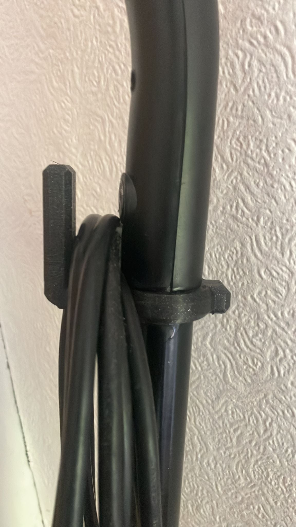 Krogen er oprindeligt udviklet som en erstatning for en defekt del på en dampmoppe, men dens alsidighed gør, at den kan anvendes på en bred vifte af apparater med en rørdiameter på ca. 25 mm. Selvom den er designet til denne standardstørrelse, kan modellen nemt tilpasses andre dimensioner efter behov. Fastgørelsen sker med en robust limbaseret metode, som sikrer en holdbar og pålidelig montering, der holder din ledning sikkert på plads.