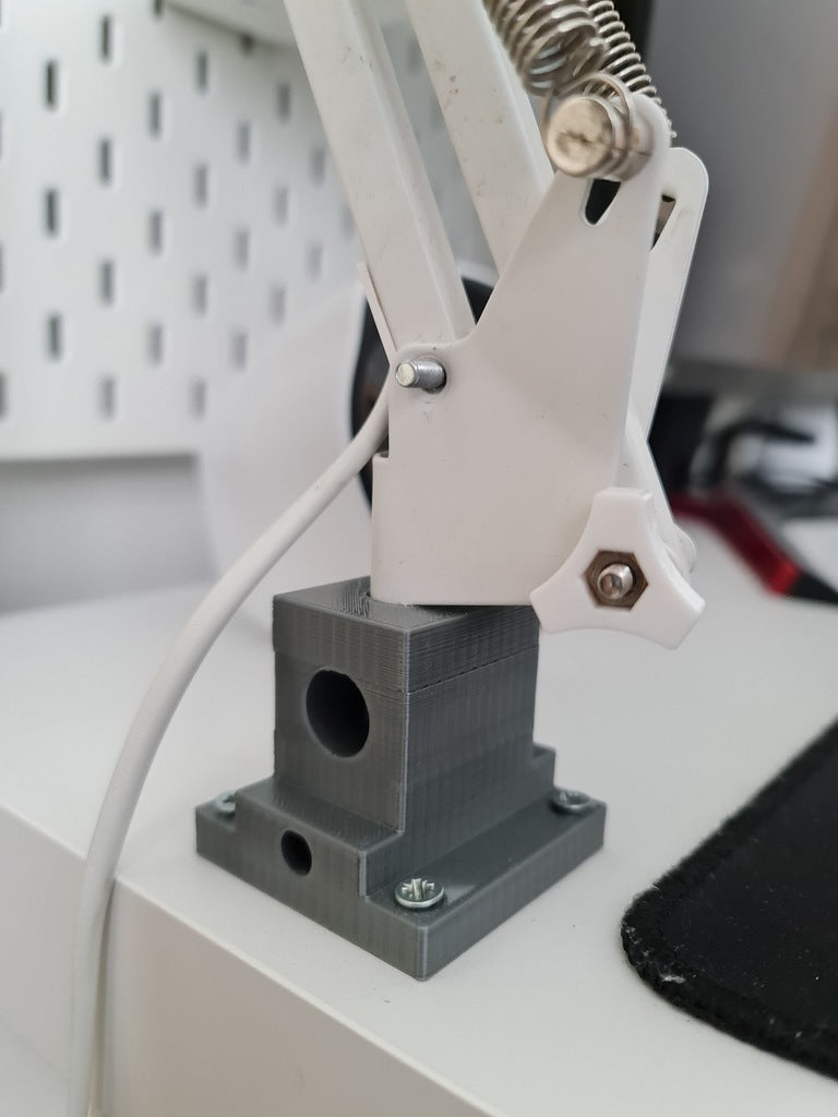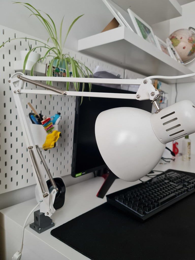 A desk mount for the IKEA Tertial lamp. The mount can be fixed directly to the desk for maximum stability and minimal movement. Suitable for any office or study area for optimal lighting. The Tertial lamp can be easily placed in the bracket for a clean and tidy workspace.