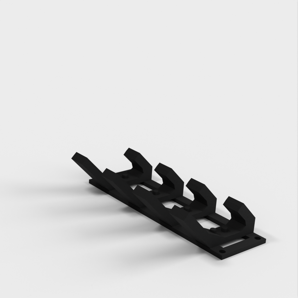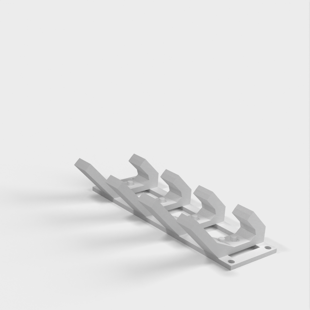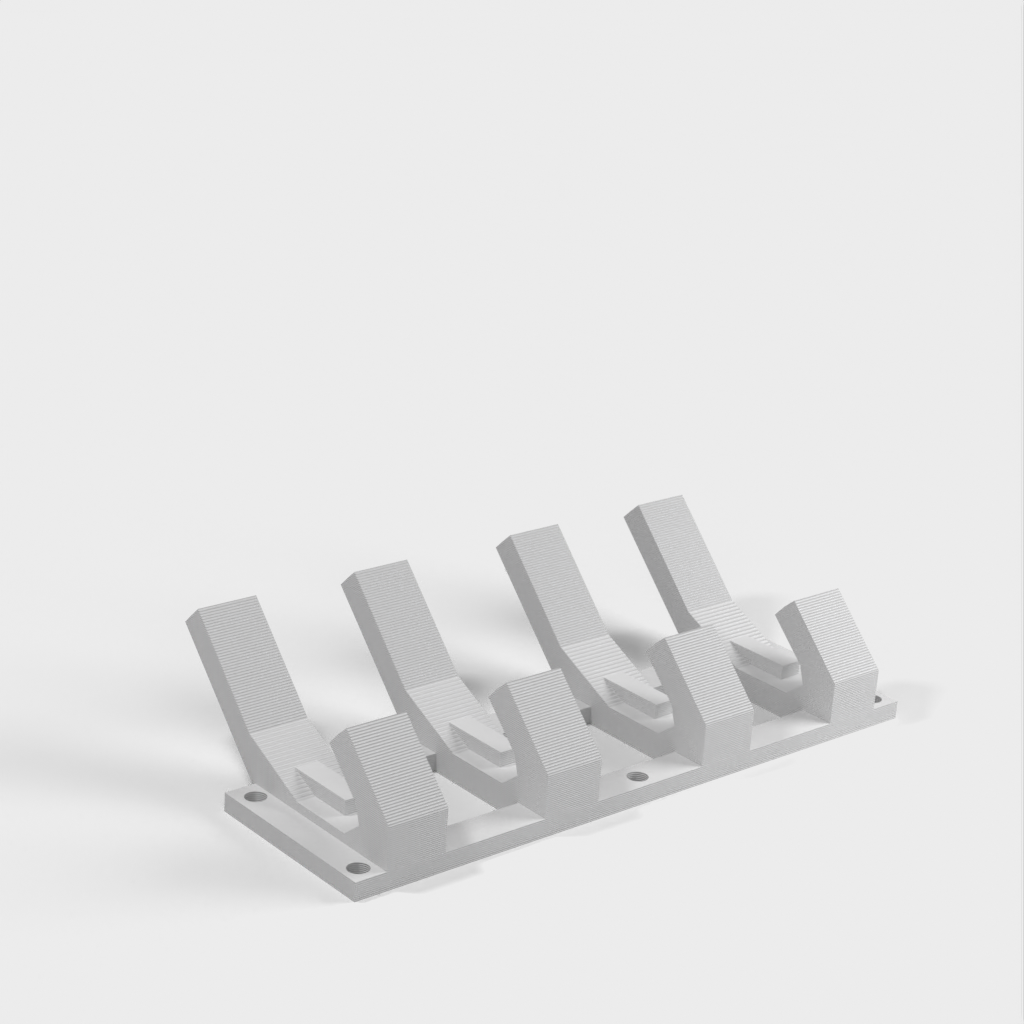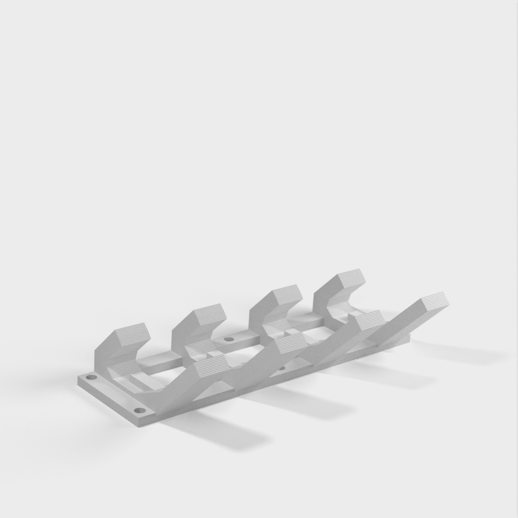 Dette er en praktisk bøjlestang med fire kroge, der kan bruges i forskellige sammenhænge. Den kan eksempelvis hænges på bagsiden af en dør til overtøj, på væggen i en entré, eller på indersiden af et skabsdør til viskestykker. Hver rev version indeholder forskellige designelementer for at maksimere dens funktionalitet.