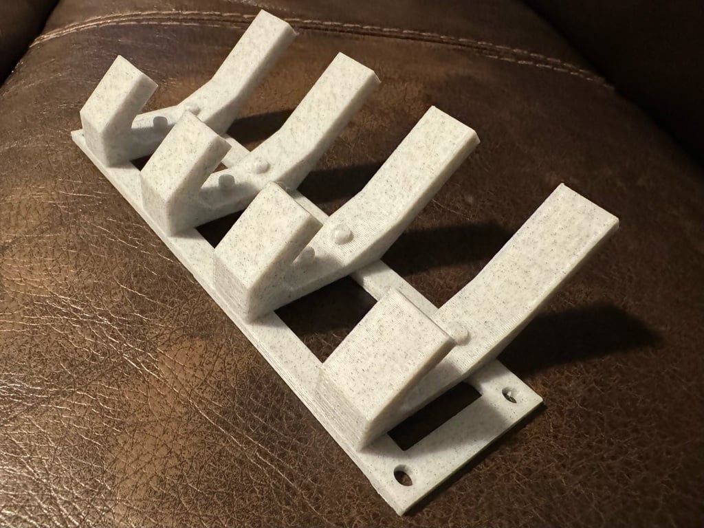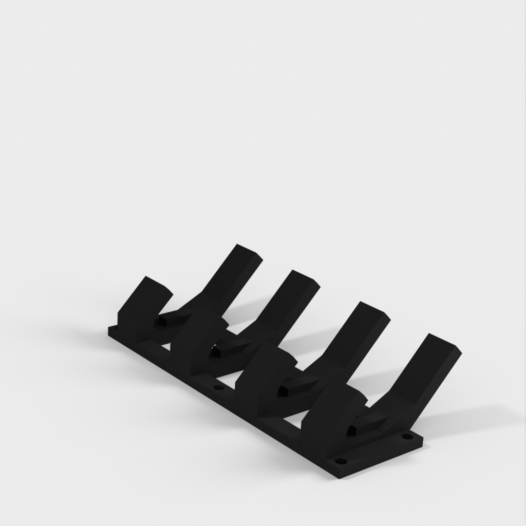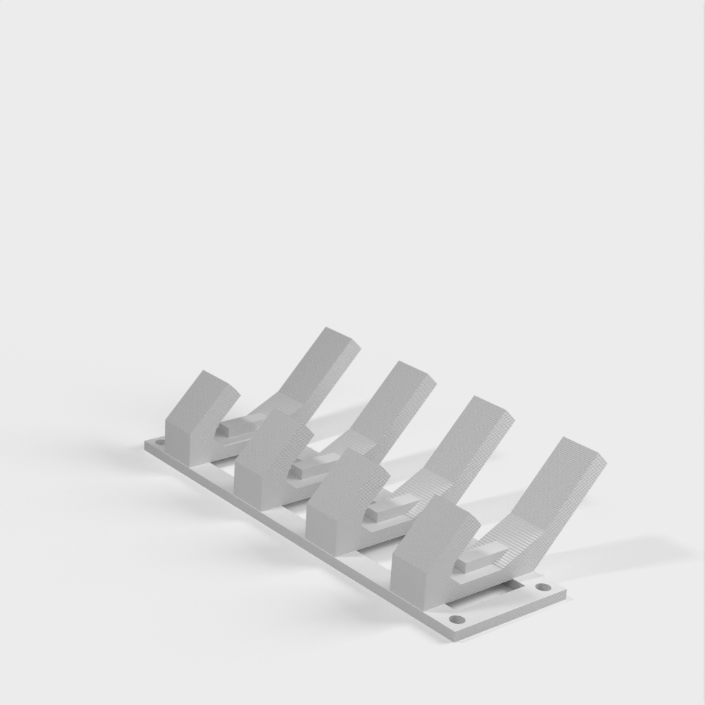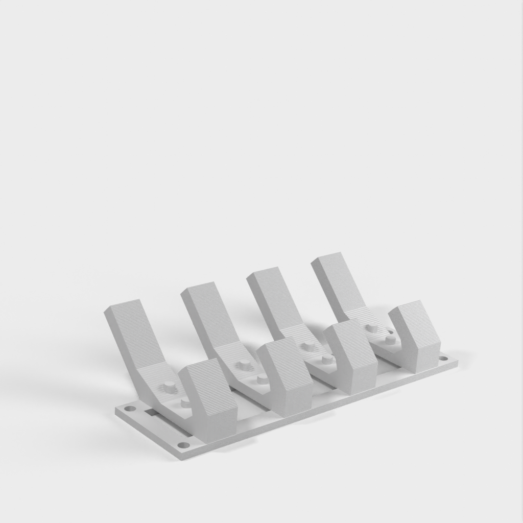 Dette er en praktisk bøjlestang med fire kroge, der kan bruges i forskellige sammenhænge. Den kan eksempelvis hænges på bagsiden af en dør til overtøj, på væggen i en entré, eller på indersiden af et skabsdør til viskestykker. Hver rev version indeholder forskellige designelementer for at maksimere dens funktionalitet.