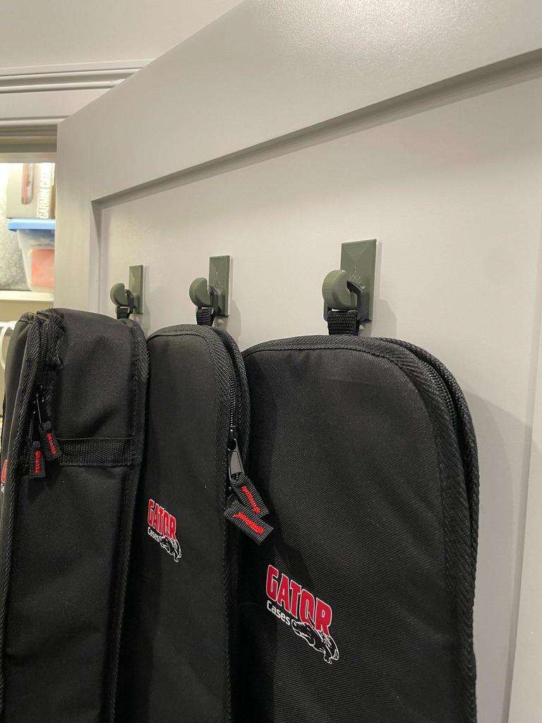 Parametrisk vægkrog designet for nemt at hænge guitar tasker i skabet. Basen af hængerne passer til 3M 1" dobbeltsidet "permanent" monteringstape. Fusion 360 filen er fuldt parametrisk og gør det let at tilpasse: