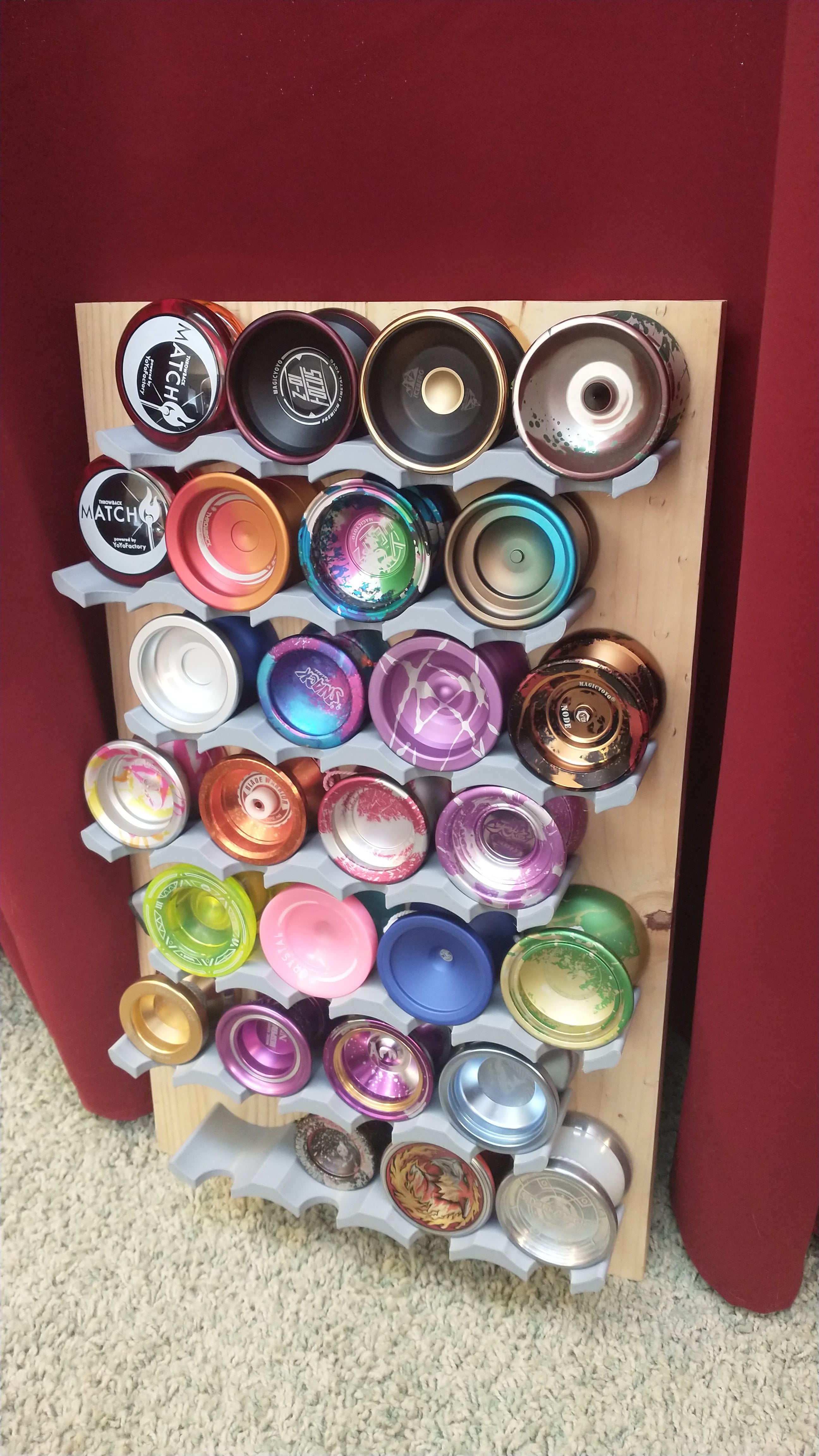 Giv dine yo-yoer en organiseret og stilfuld plads med dette smarte og pladsbesparende yo-yo ophæng. Dette design er skabt til at holde din samling ryddelig og let tilgængelig, hvilket gør det til en ideel løsning for enhver yo-yo entusiast.