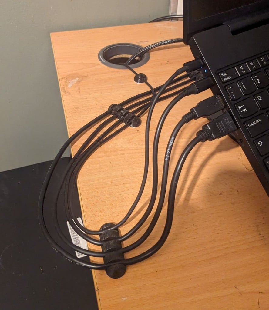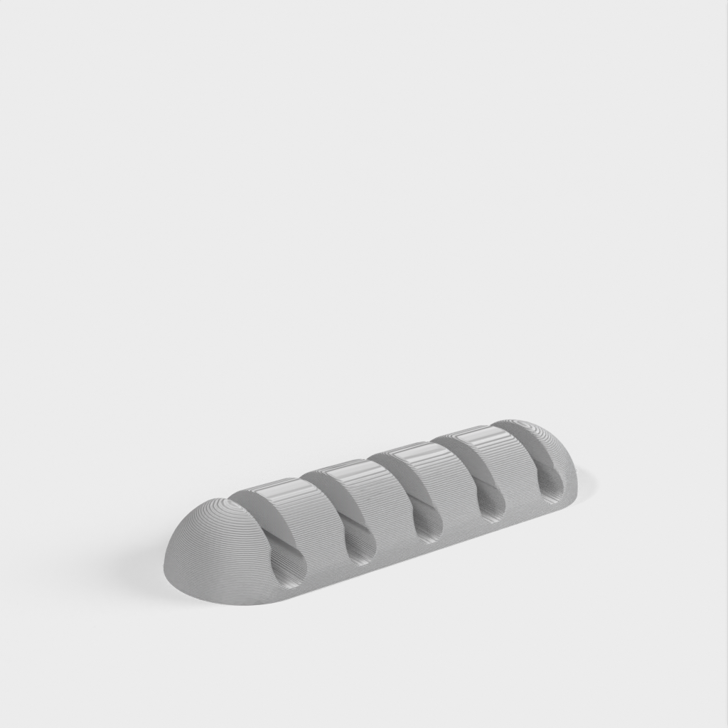 Dette er et sæt af 5mm kabelholdere, der er designet til at rumme en bred vifte af kabler, herunder tyndere HDMI-kabler og laptopopladere. Holderen giver mulighed for et organiseret og ryddeligt kabelforløb, da kabelholderne kommer i mindre versioner med forskellige antal rum for en skræddersyet kabelforvaltning.