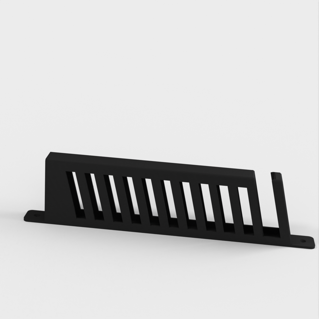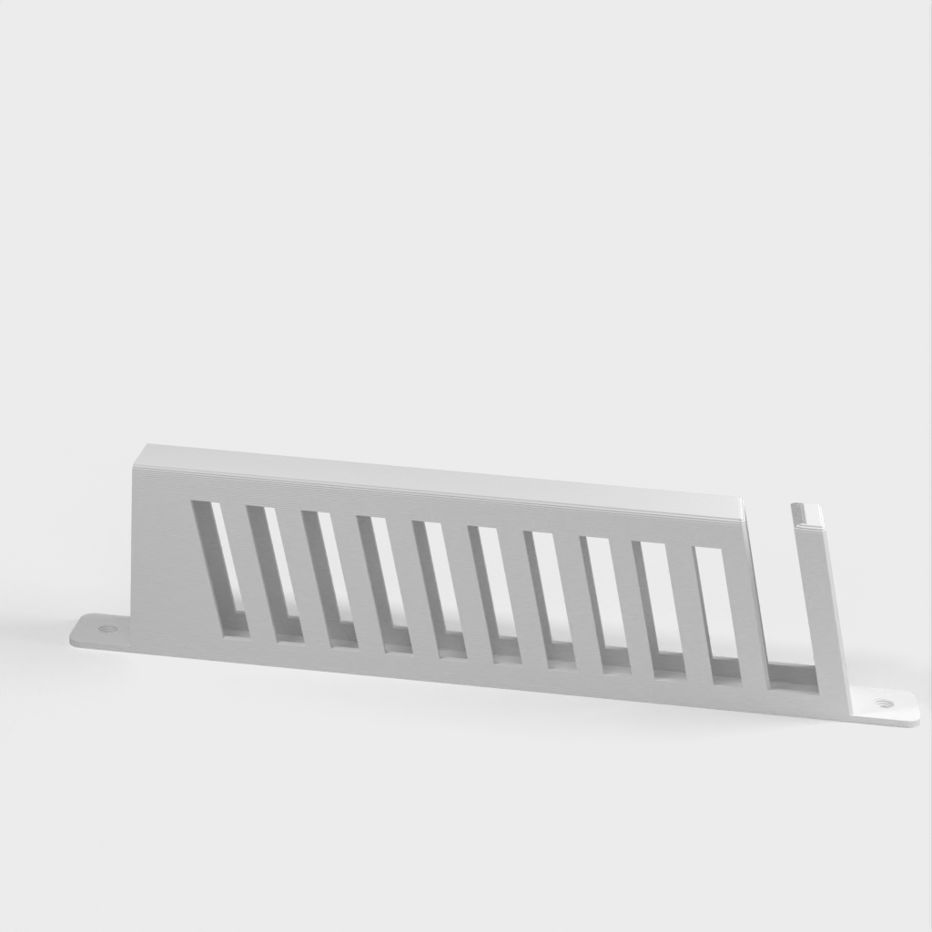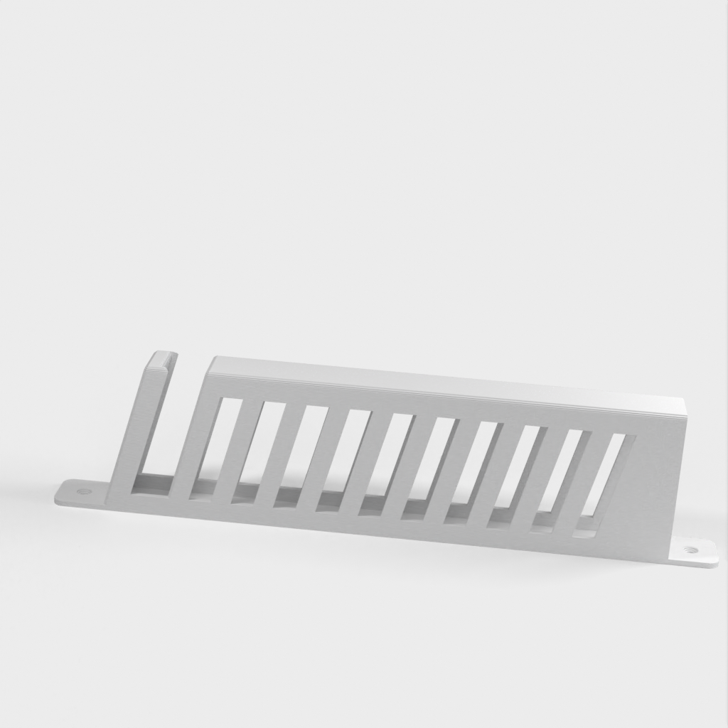 AA batteriholder er designet til at sikre dine AA batterier på en organiseret og sikker måde. Denne holder kan fastgøres på enhver overflade med dobbeltsidet tape, hvilket medfører nem installation, eller du kan også vælge at fastgøre det med skruer for ekstra stabilitet. Dette produkt sikrer nem adgang til batterier, når de er nødvendige og holder dem på et sikkert sted, når de ikke er i brug.