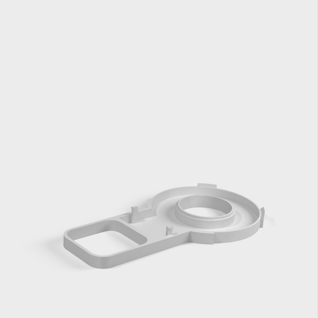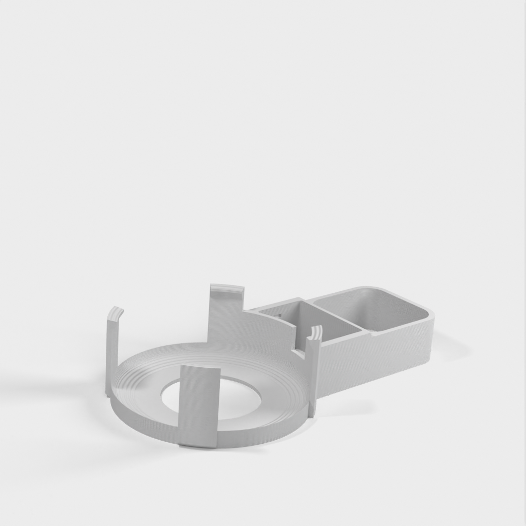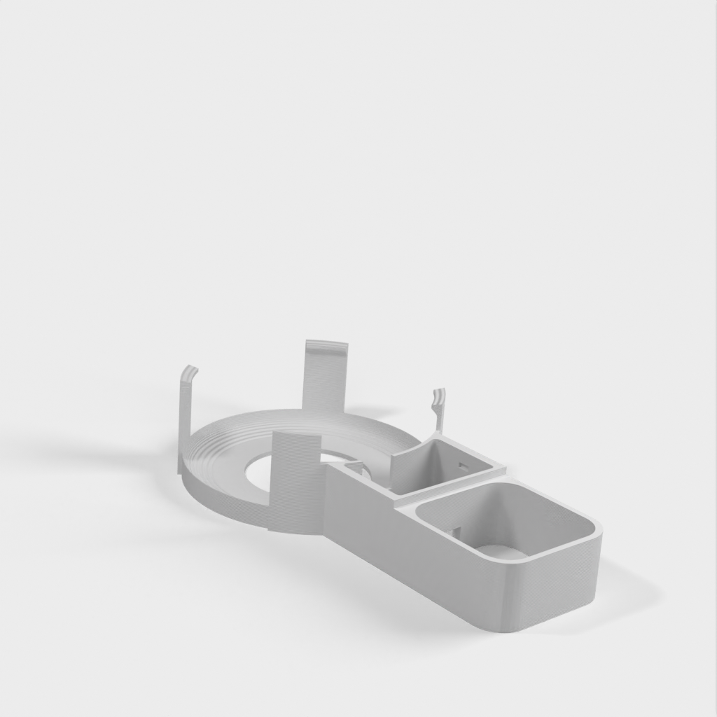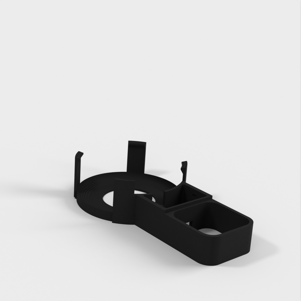 Beskrivelse af Amazon Echo Dot (3. generation) vægstikmontering. Denne montering er designet til at fastgøre din Echo Dot direkte til vægstikket, hvilket hjælper med at skjule ledningen og spare plads. Monteringen er designet til ikke at blokere højttalerne på din Echo Dot, hvilket sikrer optimal lydoplevelse. Ud over Echo Dot holderen, omfatter sættet en bunddel, der glider på undersiden af strømforsyningen og giver plads til vikling af ledningen rundt om et centralt 'kerne', en topdel der skubber ned over toppen af strømforsyningen og klikker fast på bunddelen, samt et cover til at dække området hvor kablet går ind i Echo Dot.