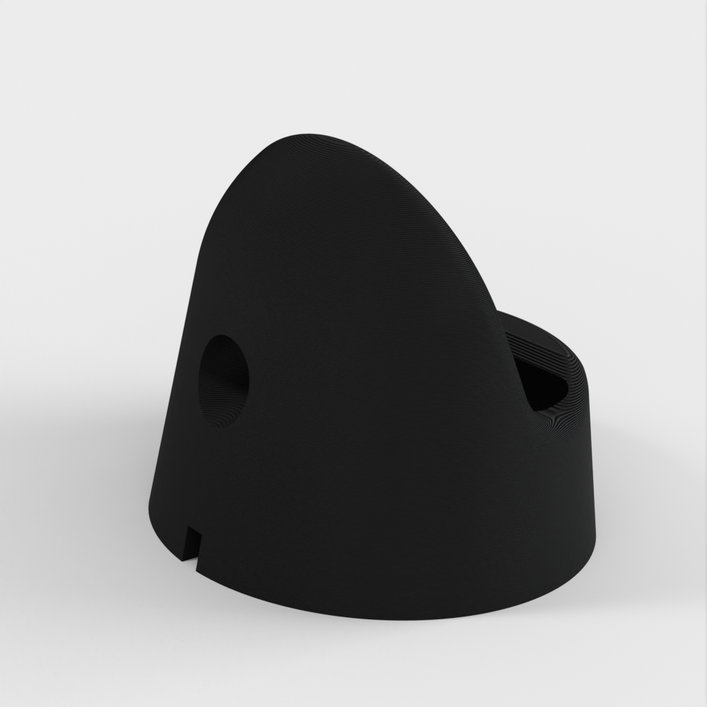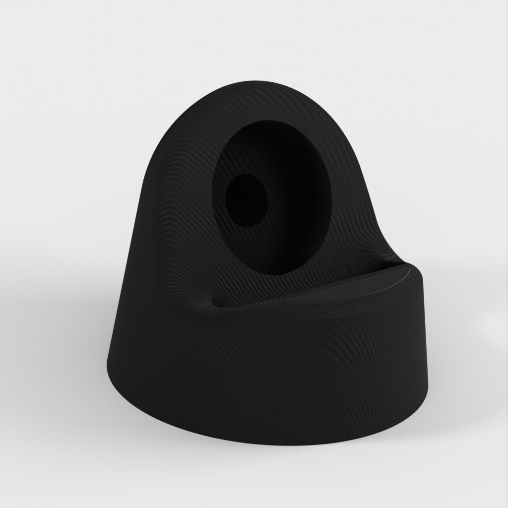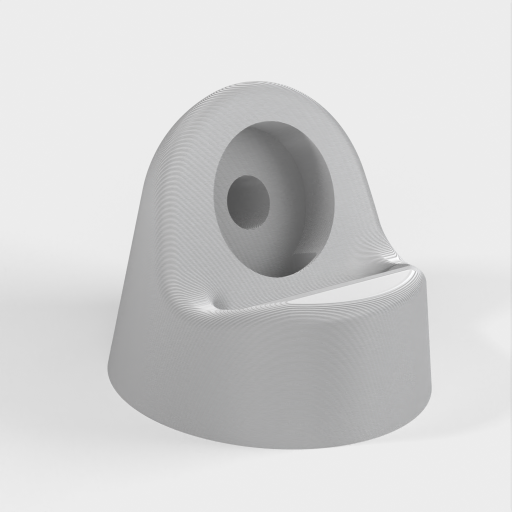 Dette er et Apple Watch-stativ, designet til at skjule opladningskablen for et mere strømlinet udseende. Standen er delt i to dele - top og bund - med en skridsikker bundudført i fleksibelt filament materiale (Ninjaflex, TPU) for at forhindre glidning på glattede overflader. De to dele holdes sammen med tre M3 x 6mm skruer. En smart løsning til opladning af dit Apple Watch.
