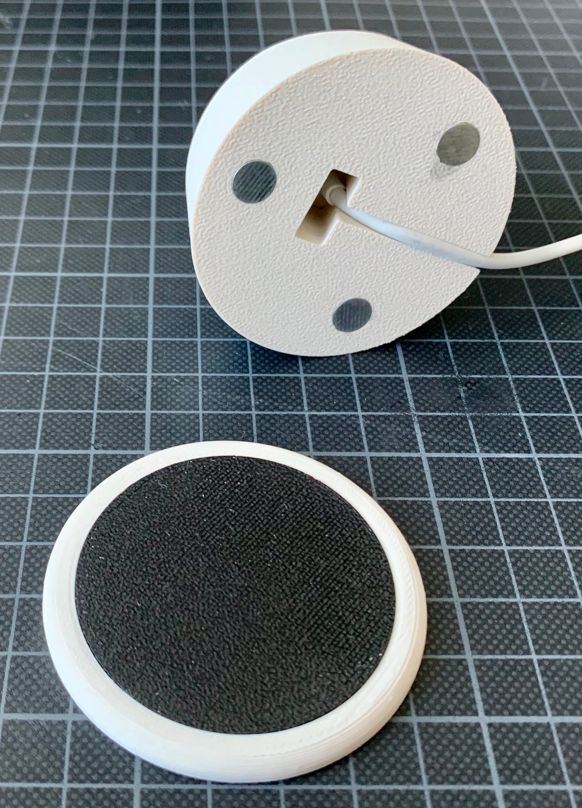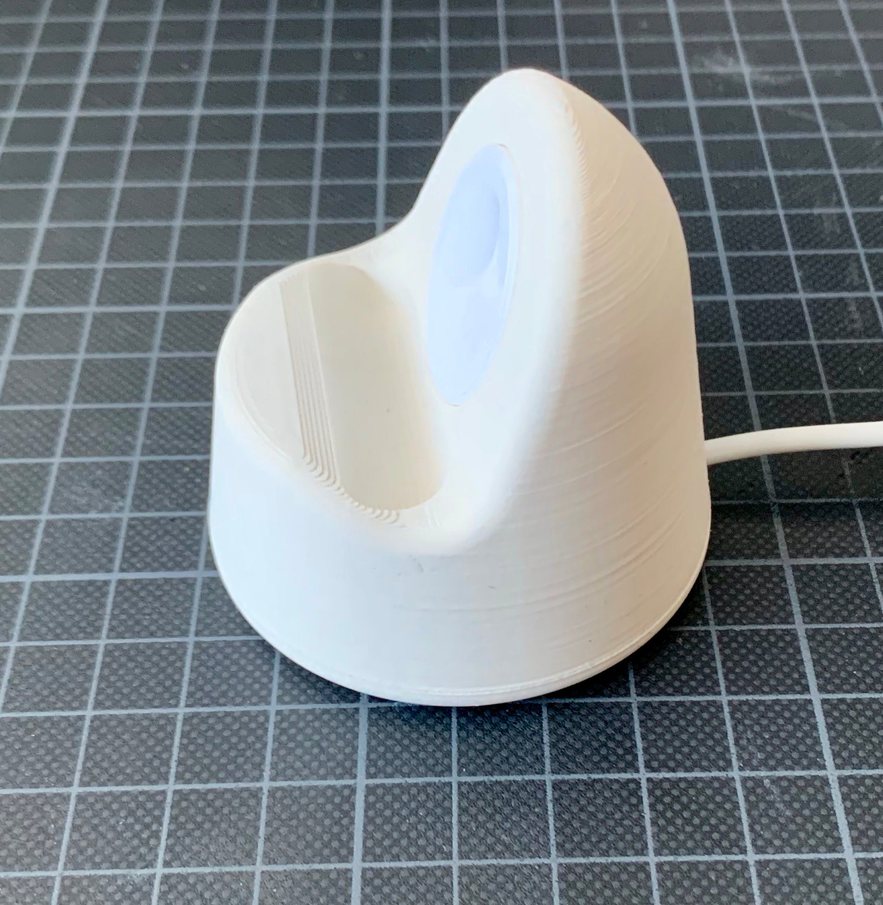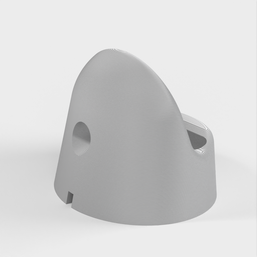 Dette er et Apple Watch-stativ, designet til at skjule opladningskablen for et mere strømlinet udseende. Standen er delt i to dele - top og bund - med en skridsikker bundudført i fleksibelt filament materiale (Ninjaflex, TPU) for at forhindre glidning på glattede overflader. De to dele holdes sammen med tre M3 x 6mm skruer. En smart løsning til opladning af dit Apple Watch.
