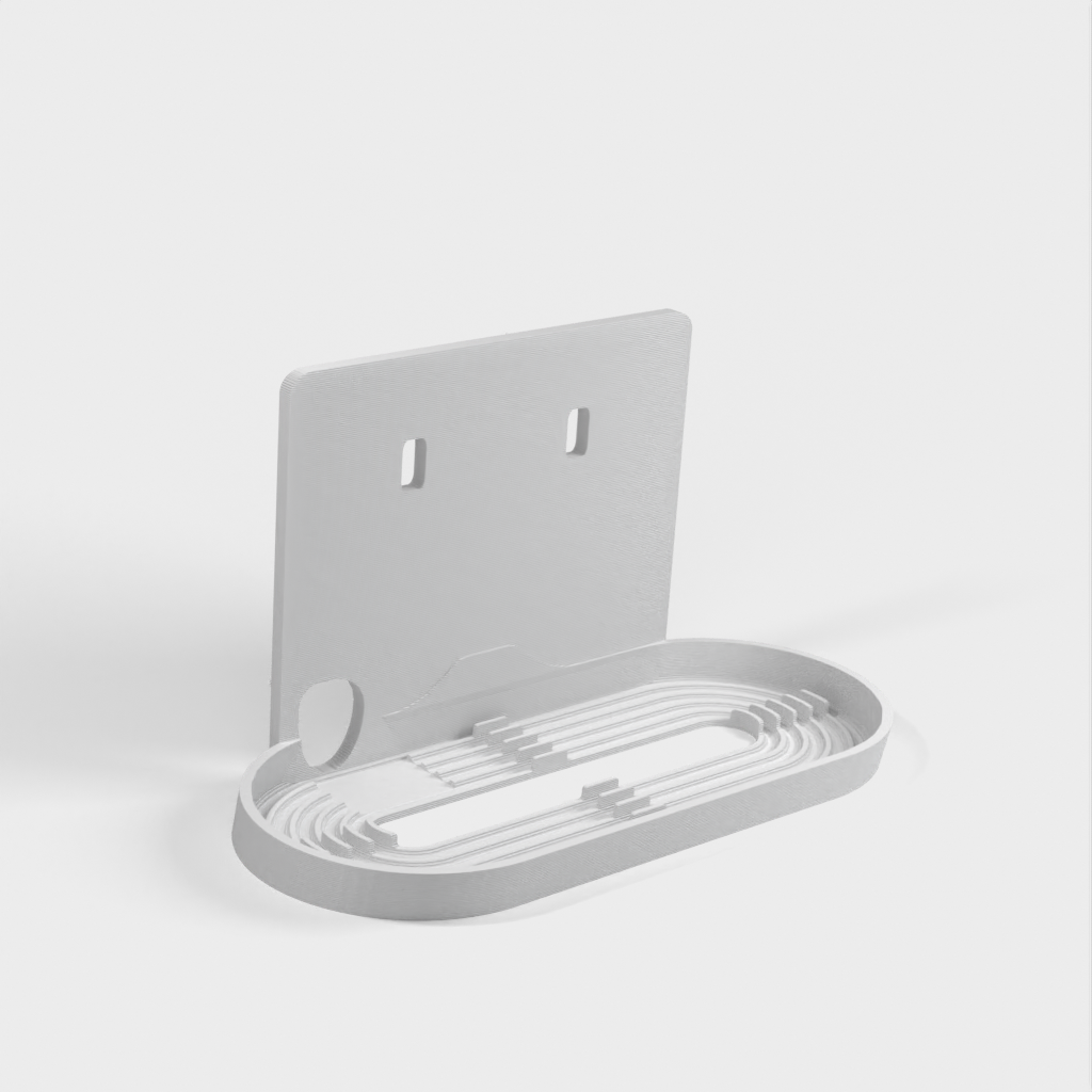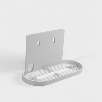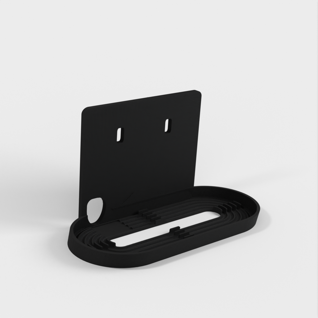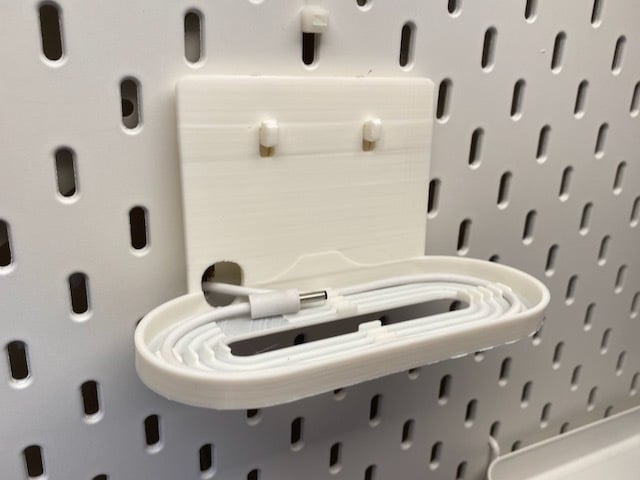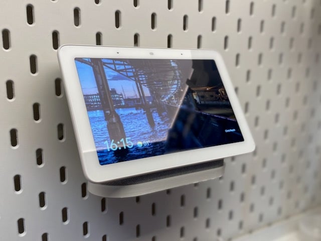 Enkel monteringsløsning til Nest / Google Home Hub til IKEA Skadis boards. Hub'en sidder så tæt på brættet som muligt, og ledningen kan føres gennem et af Skadis' eksisterende slidser, hvilket gør at ingen ledninger er synlige. Kræver to universal kroge for en pæn montering.