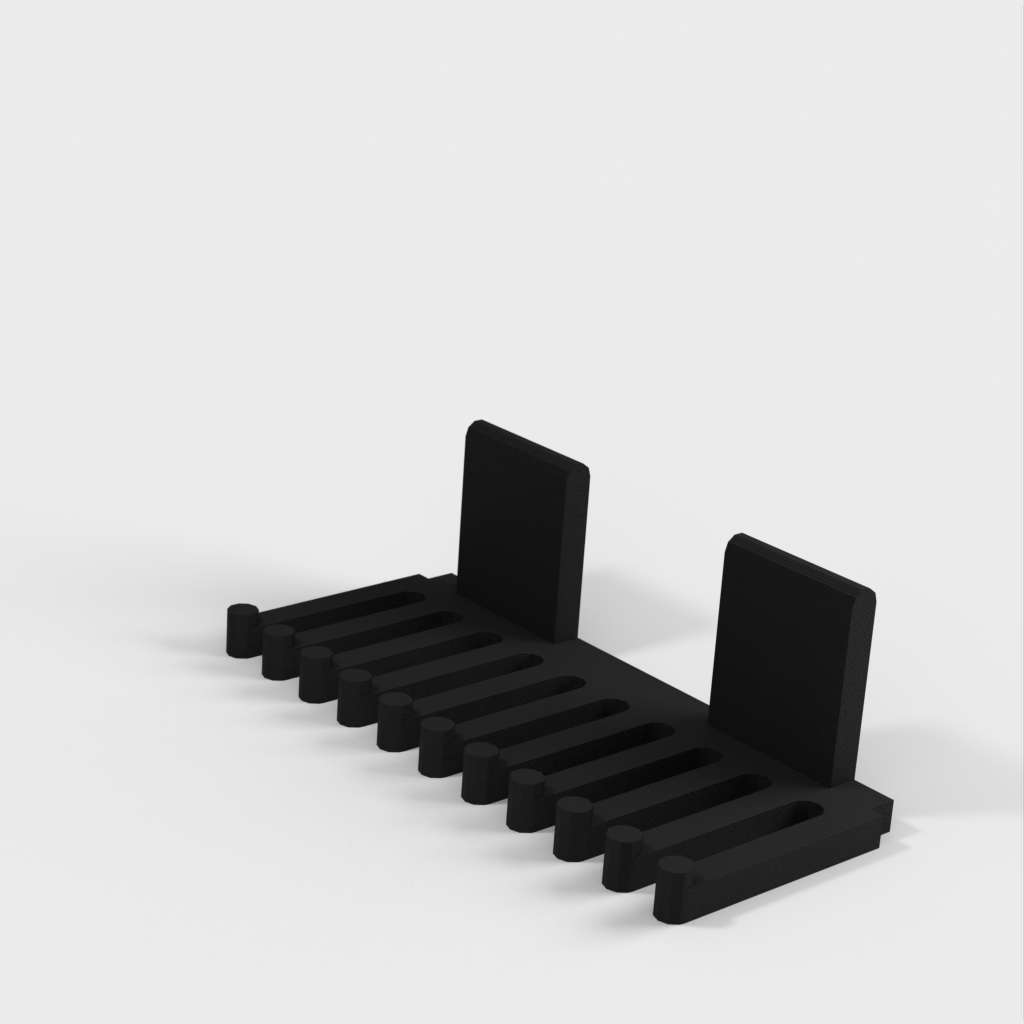 Kambleshåndteres kabelholder er et praktisk værktøj til at organisere og holde dine kabler på plads. Denne kabelholder er modificeret fra det oprindelige design for at have en flad overflade. Dette gør det muligt at bruge dobbeltklæbende tape eller 3M kontaktklæbestræk, afhængigt af dine præferencer og behov. Denne holder er perfekt til ethvert hjem, kontor eller værksted for at holde dine kabler pæne og ryddelige.